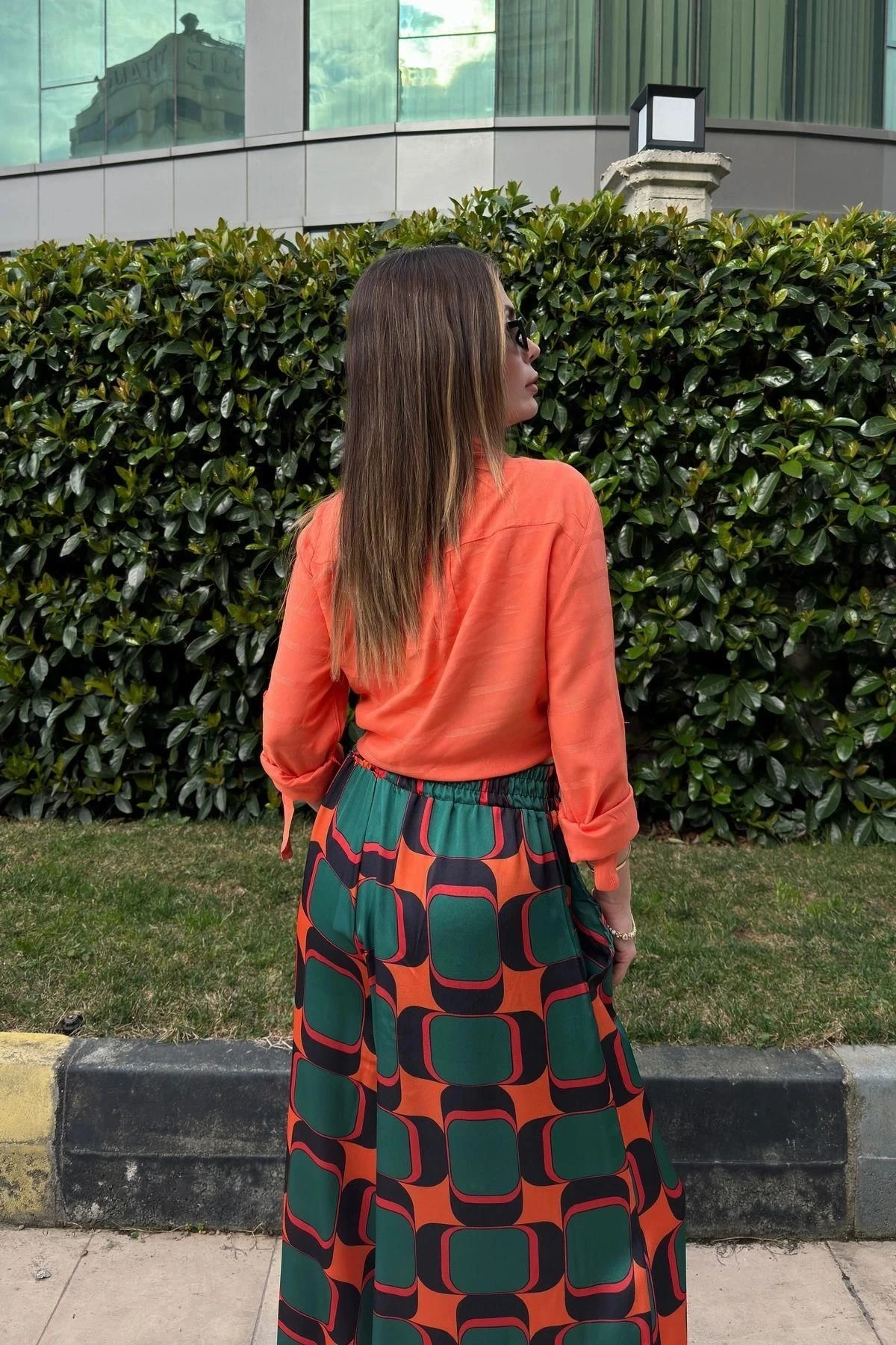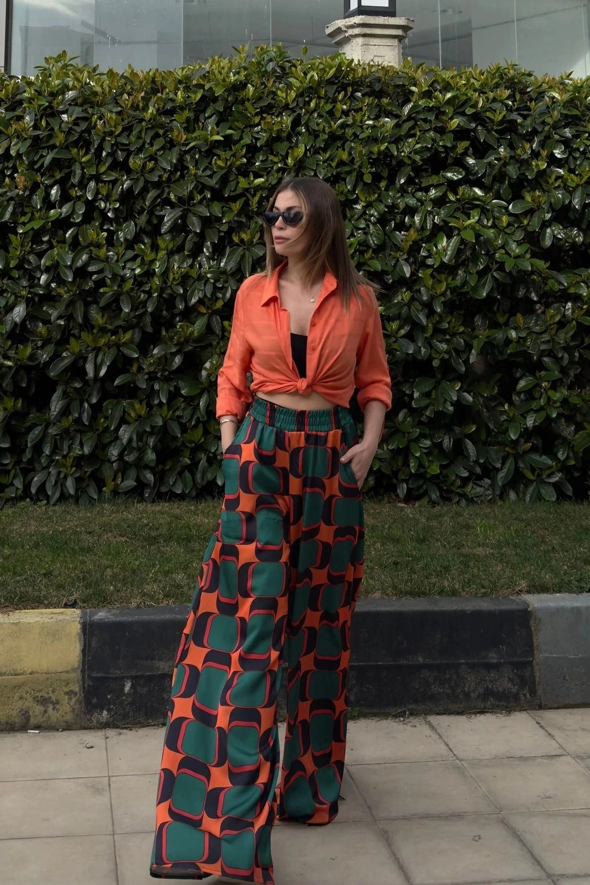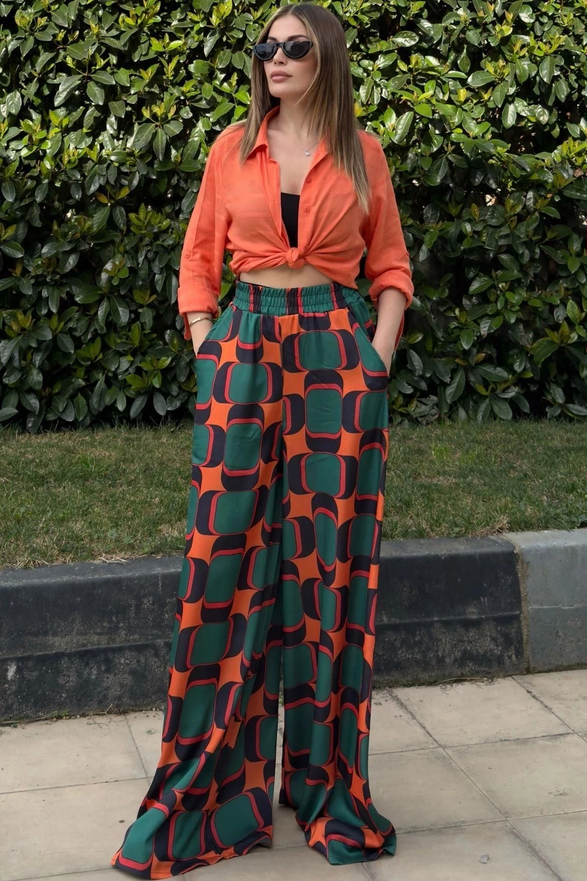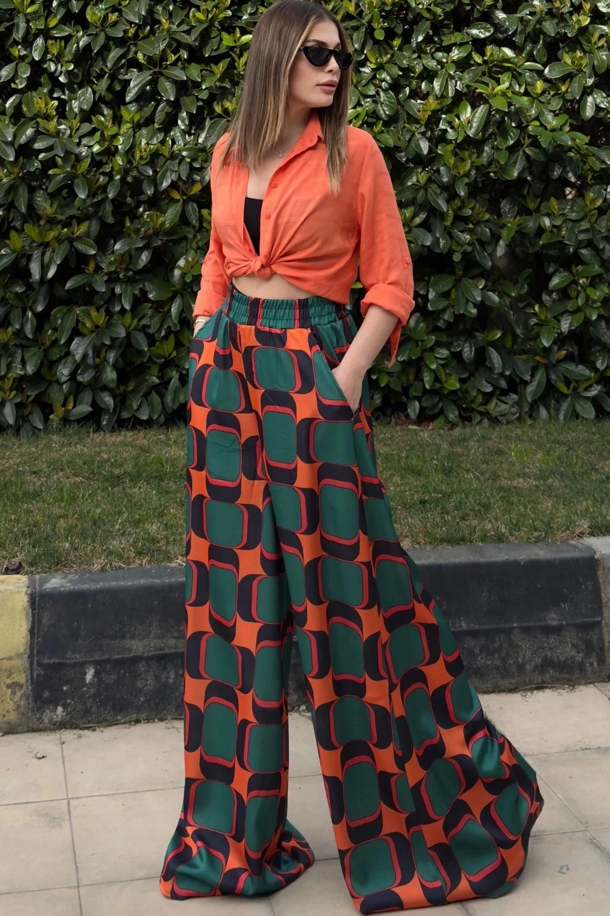 Oranj Beli Lastikli, Cepli, İspanyol / Bol Paça Özel Kumaş, Rahat Kalıp Pantolon - Tesettüre Uygun