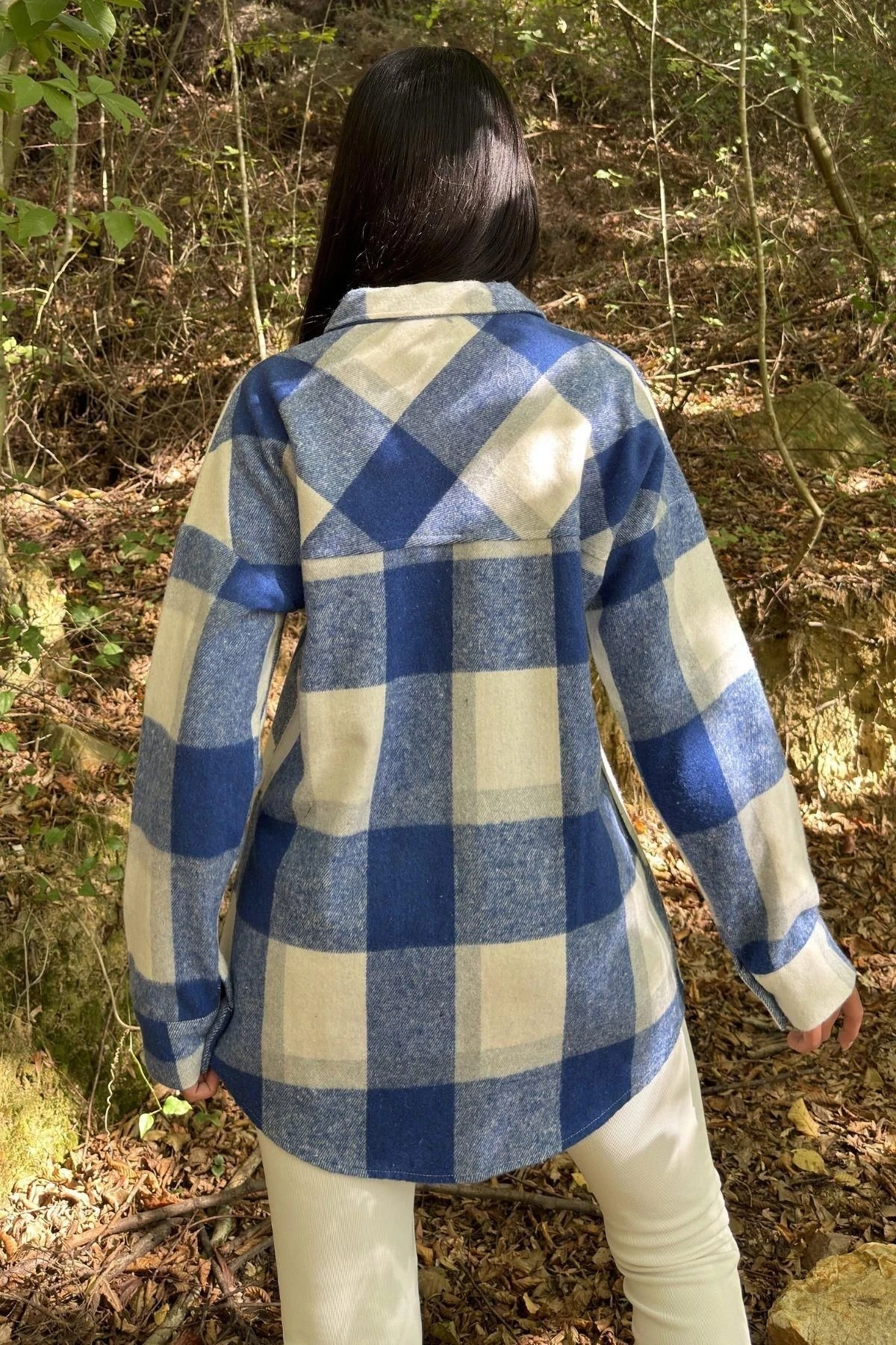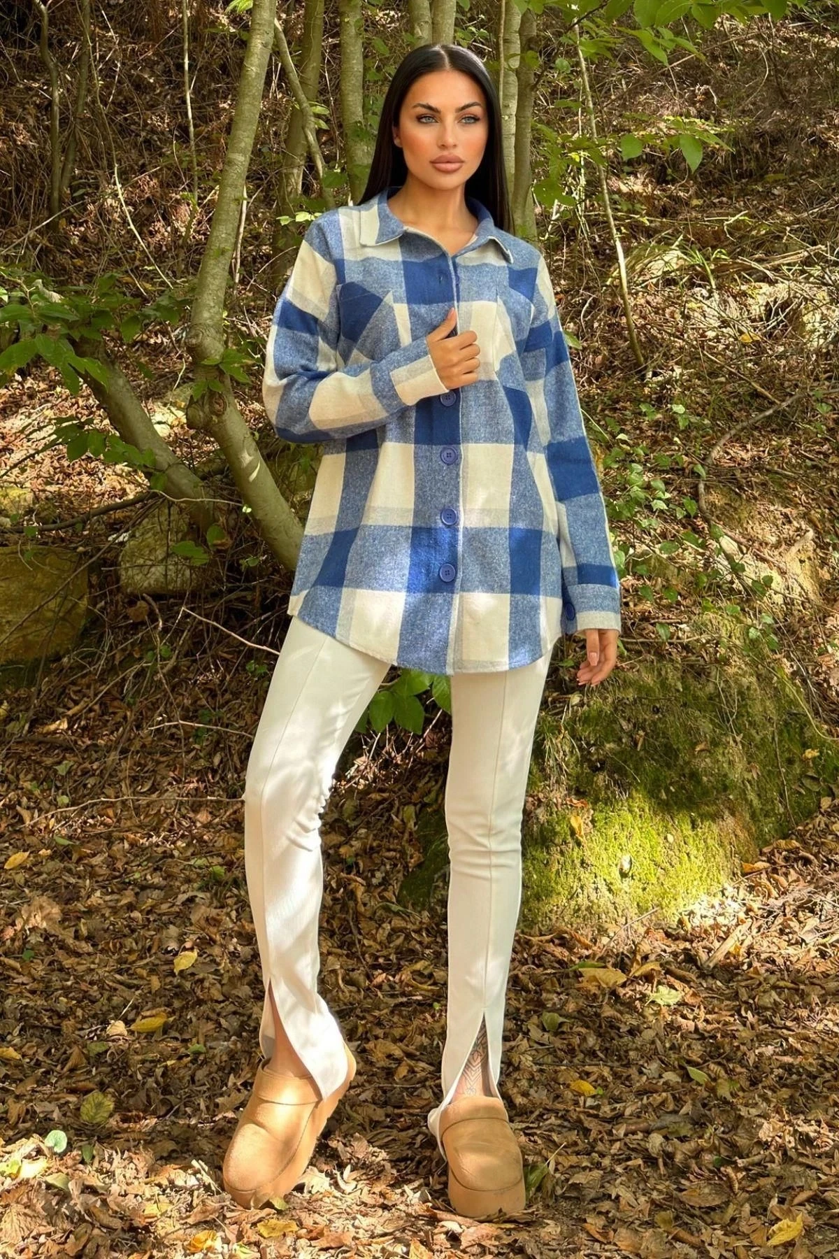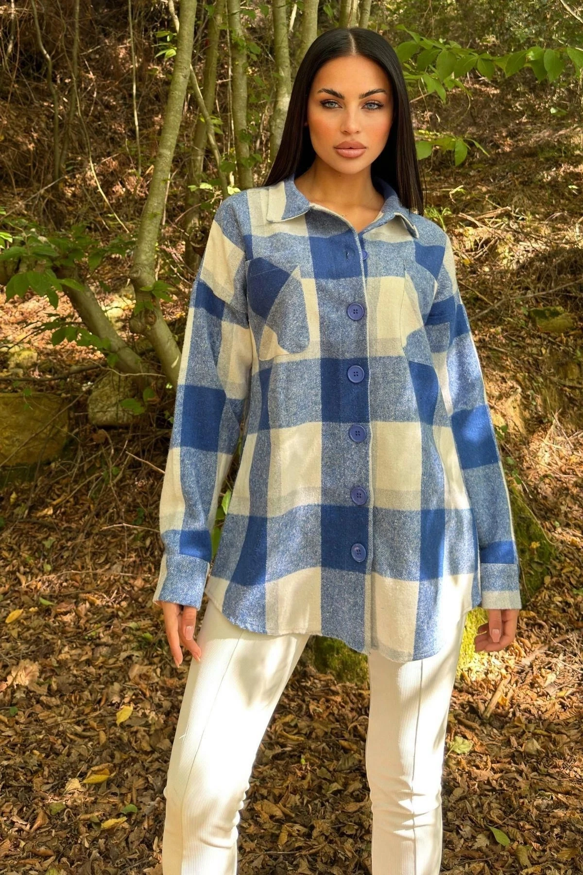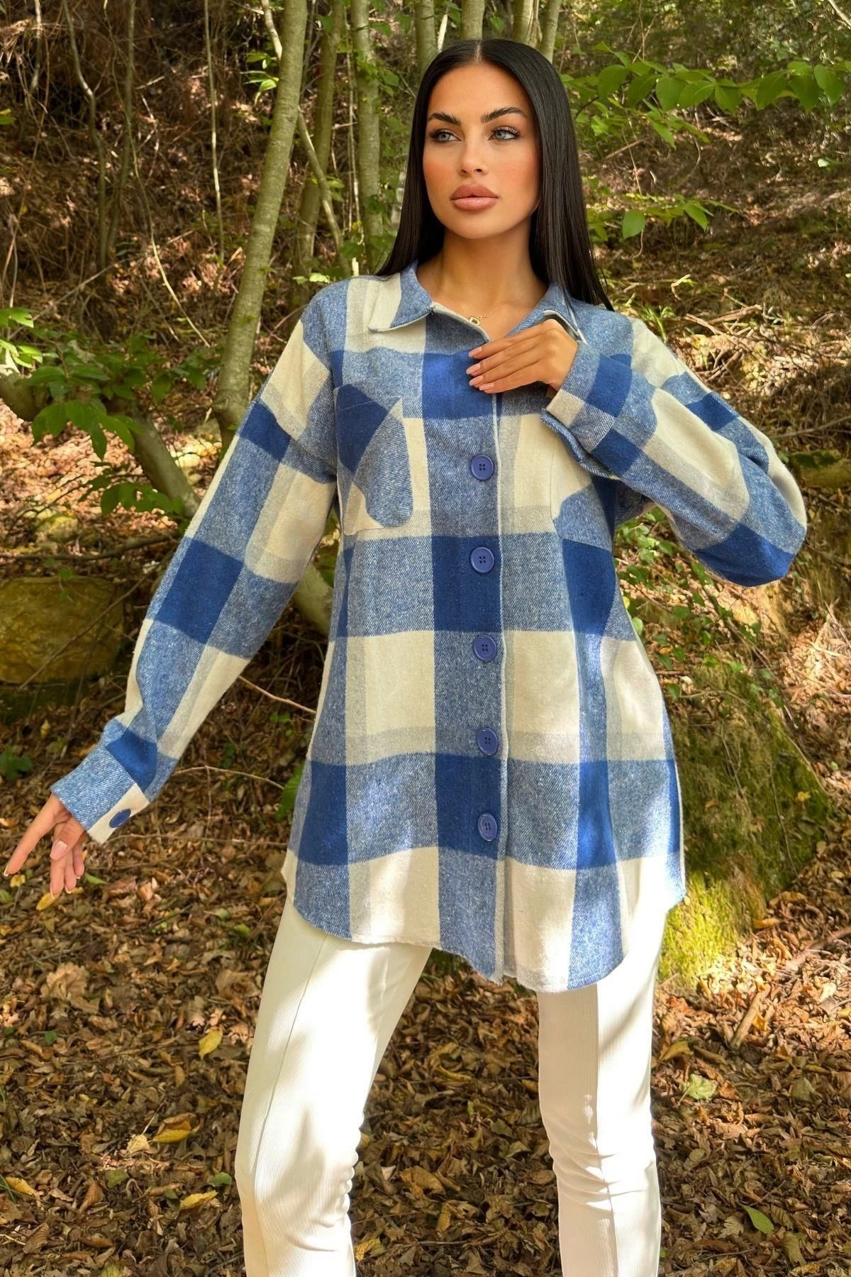 Saks Çift Cepli, Ekose Desenli, Rahat Kalıp, Salaş Kaşe Gömlek