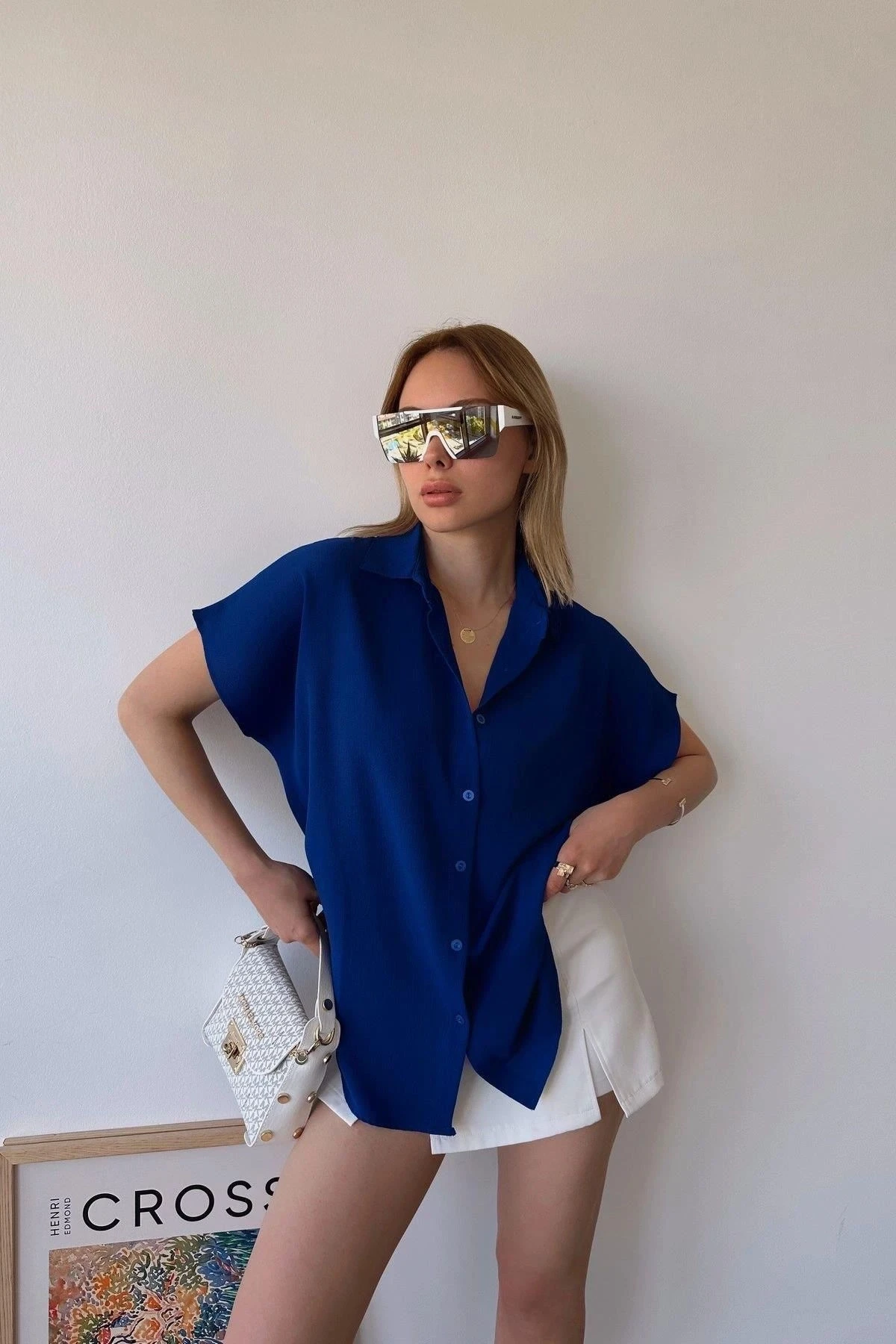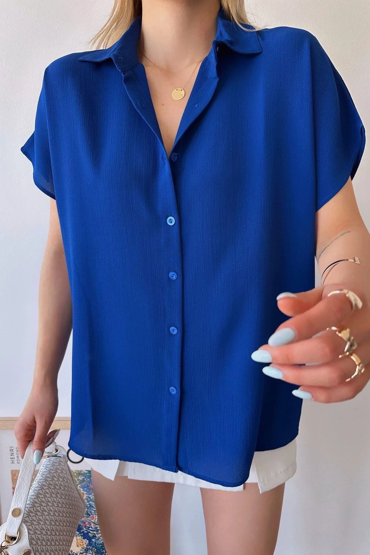 Bu Saks Klasik Yaka, Kısa Kol, Dokulu Kumaş, Salaş & Rahat Kalıp/Kesim, Gömlek, rahatlık ve şıklığı bir araya getiren bir seçenektir.; %100 viskon kumaş, hafif ve nefes alabilen bir yapıya sahiptir, böylece gün boyu rahatlık sağlar.; Saks rengi, canlı ve dikkat çekici bir seçimdir.; Bu renk, gardırobunuza tazelik ve enerji katar.; Herhangi bir kombinde kolaylıkla uyum sağlar ve stilinizi tamamlar.; Klasik yaka tasarımı, şıklık ve zarafet sunar.; Kısa kollu kesim, daha serin ve rahat bir his sağlar.; Bu gömlek, yaz aylarında veya sıcak havalarda tercih edebileceğiniz ideal bir seçenektir.; Dokulu kumaş, gömleğe benzersiz bir görünüm ve dokunuş katar.; Bu detay, basit bir tasarımı bile ilgi çekici hale getirir.; Salaş ve rahat kalıp, özgürce hareket etmenizi sağlar ve gün boyu konfor sunar.; Bu Saks Klasik Yaka, Kısa Kol, Dokulu Kumaş, Salaş & Rahat Kalıp/Kesim, Gömlek, her gün kullanabileceğiniz bir parça olmakla birlikte özel etkinliklerde de şık bir seçimdir.; Rahatlığı ve şıklığı bir arada sunan bu gömlek, tarzınızı yansıtmak ve kendinizi özgür hissetmek istediğiniz her an için mükemmel bir seçenektir.