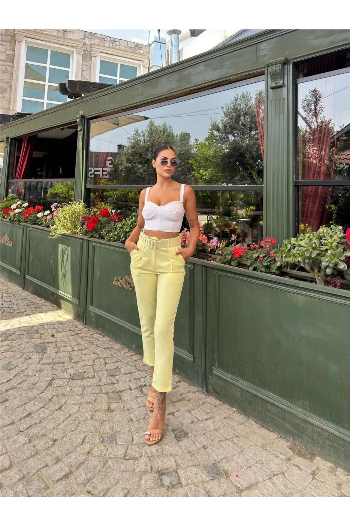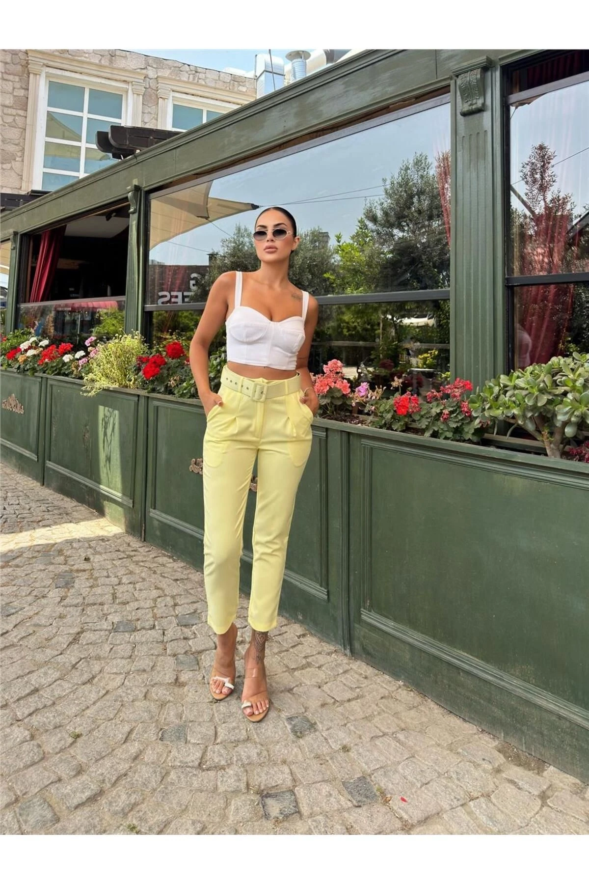 Sarı Kemerli Bol Paça Pantolon