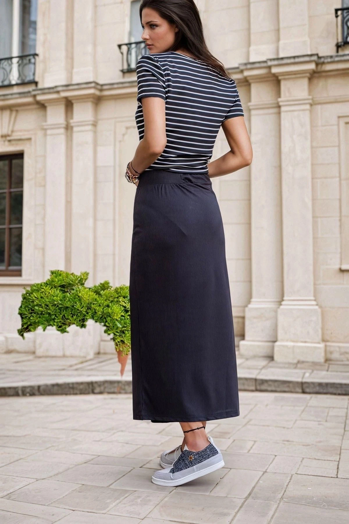 Siyah Beli Lastikli, Düğme Detaylı, Midi Boy Etek