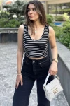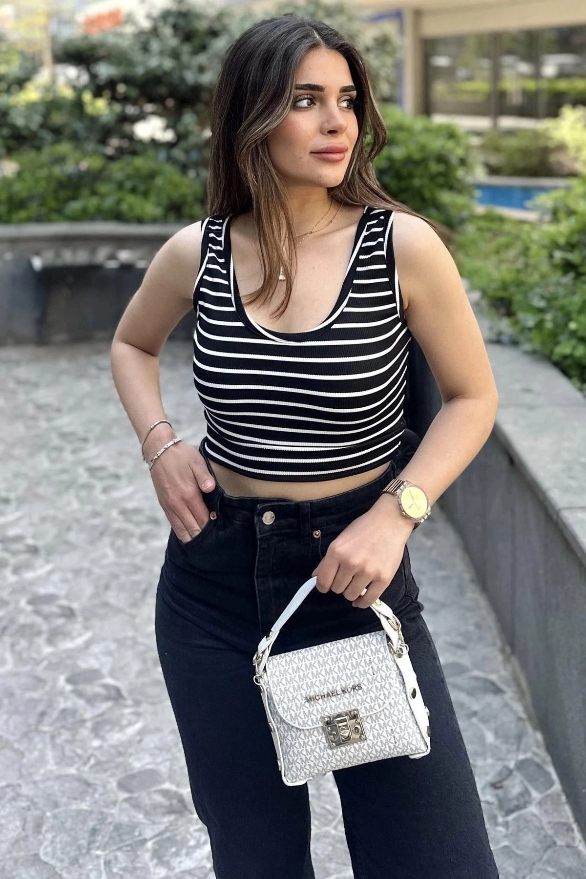 Siyah &Beyaz Çizgili, Dar Kesim, Yuvarlak Yaka, Terletmez, Crop Bluz & Atlet