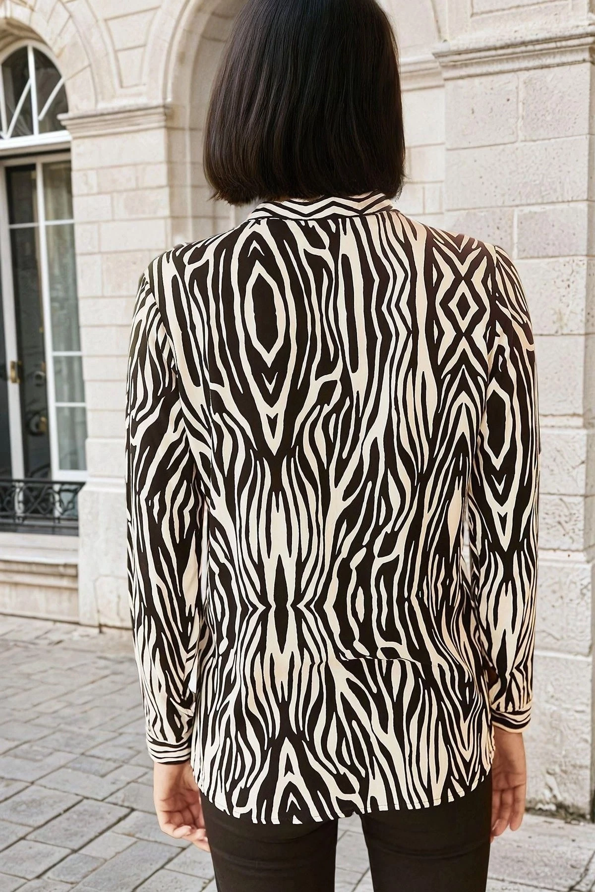 Siyah Beyaz Zebra Desenli, Klasik Kesimli, Uzun Kollu Gömlek