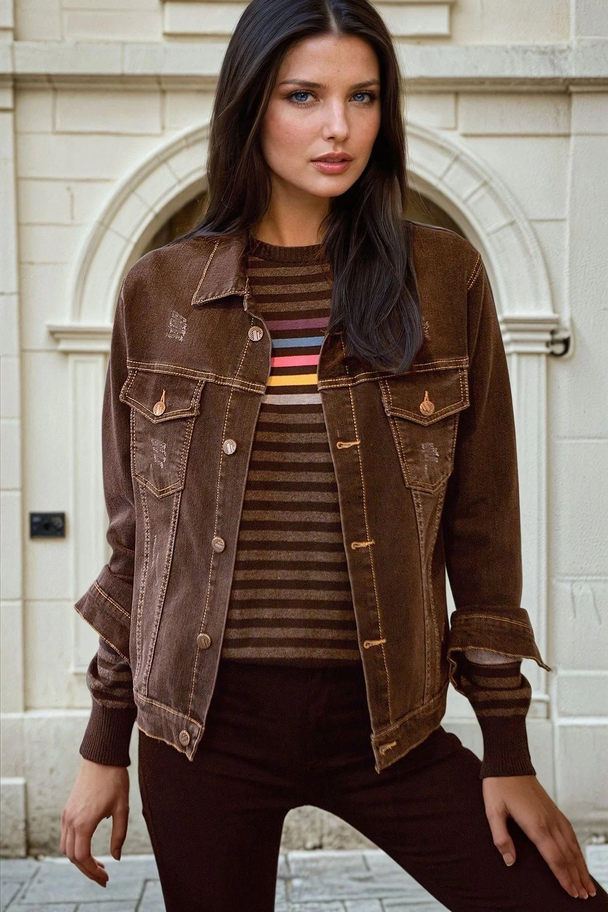 Siyah Cep Detaylı, Uzun Kollu, Kot Ceket