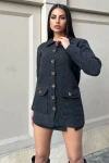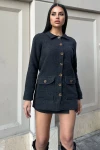 Siyah Çift Cepli, Yumuşak Dokulu Uzun Kaşe Ceket