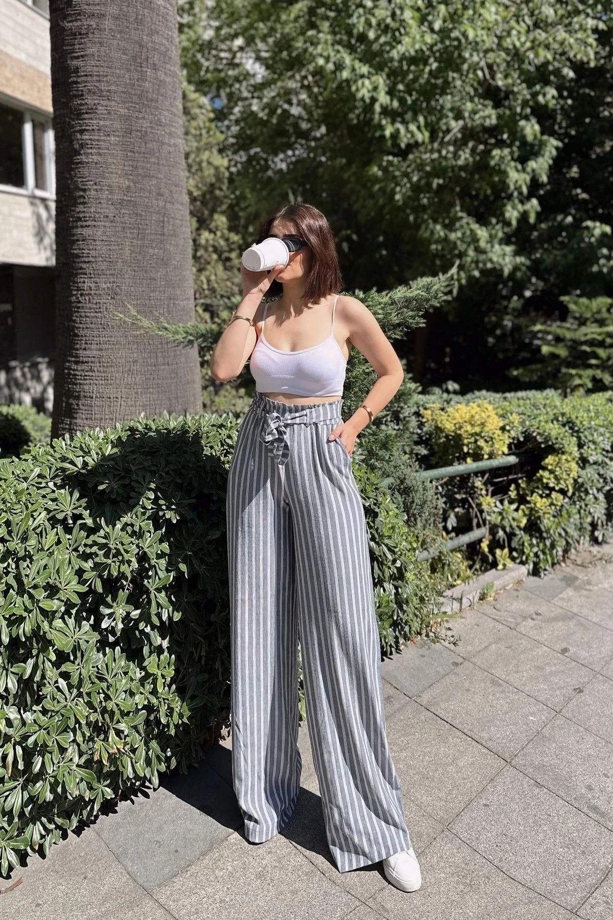 Bu Siyah & Ekru Bol Paça, Yüksek Bel, Keten Kumaş, Salaş Kesim, Beli Lastikli, Kemerli Cepli Pantolon, rahatlık ve şıklığı bir araya getiren özel bir parçadır.; %60 cotton %40 polyester kumaş yapısı, pantolonun yumuşaklık, dayanıklılık ve nefes alabilirlik sunmasını sağlar.; Siyah ve ekru renklerin kombinasyonu, pantolona sofistike bir görünüm kazandırır.; Bol paça kesimi ve yüksek bel tasarımı, modern bir tarz sunarken, aynı zamanda rahat bir giyim deneyimi sağlar.; Beli lastikli ve kemerli detayları, pantolonun vücuda uyum sağlamasını ve belde hoş bir vurgu yapmasını sağlar.; Keten kumaş, yaz aylarında serinlik sağlarken, hafif ve nefes alabilen bir his sunar.; Salaş kesimi, rahatlık ve hareket özgürlüğü sunarken, aynı zamanda şık bir duruş sergiler.; Cepli detaylar ise kullanışlılık ve fonksiyonellik katmaktadır.; Bu Siyah & Ekru Bol Paça, Yüksek Bel, Keten Kumaş, Salaş Kesim, Beli Lastikli, Kemerli Cepli Pantolon, gardırobunuzun vazgeçilmez bir parçası olacak.; Hem günlük hem de özel günlerde tercih edebileceğiniz bu pantolonla farklı tarzlar oluşturabilirsiniz.; Şık bir bluz veya gömlek ile kombinleyerek şık bir görünüm elde edebilir veya daha rahat bir stil için basic t-shirtlerle tamamlayabilirsiniz.; Kendinizi hem rahat hem de şık hissetmek istediğinizde bu pantolon sizin için mükemmel bir seçenek olacaktır.; Tarzınızı yansıtmak ve özgün bir stil oluşturmak için Siyah & Ekru Bol Paça, Yüksek Bel, Keten Kumaş, Salaş Kesim, Beli Lastikli, Kemerli Cepli Pantolon'u tercih edebilirsiniz.