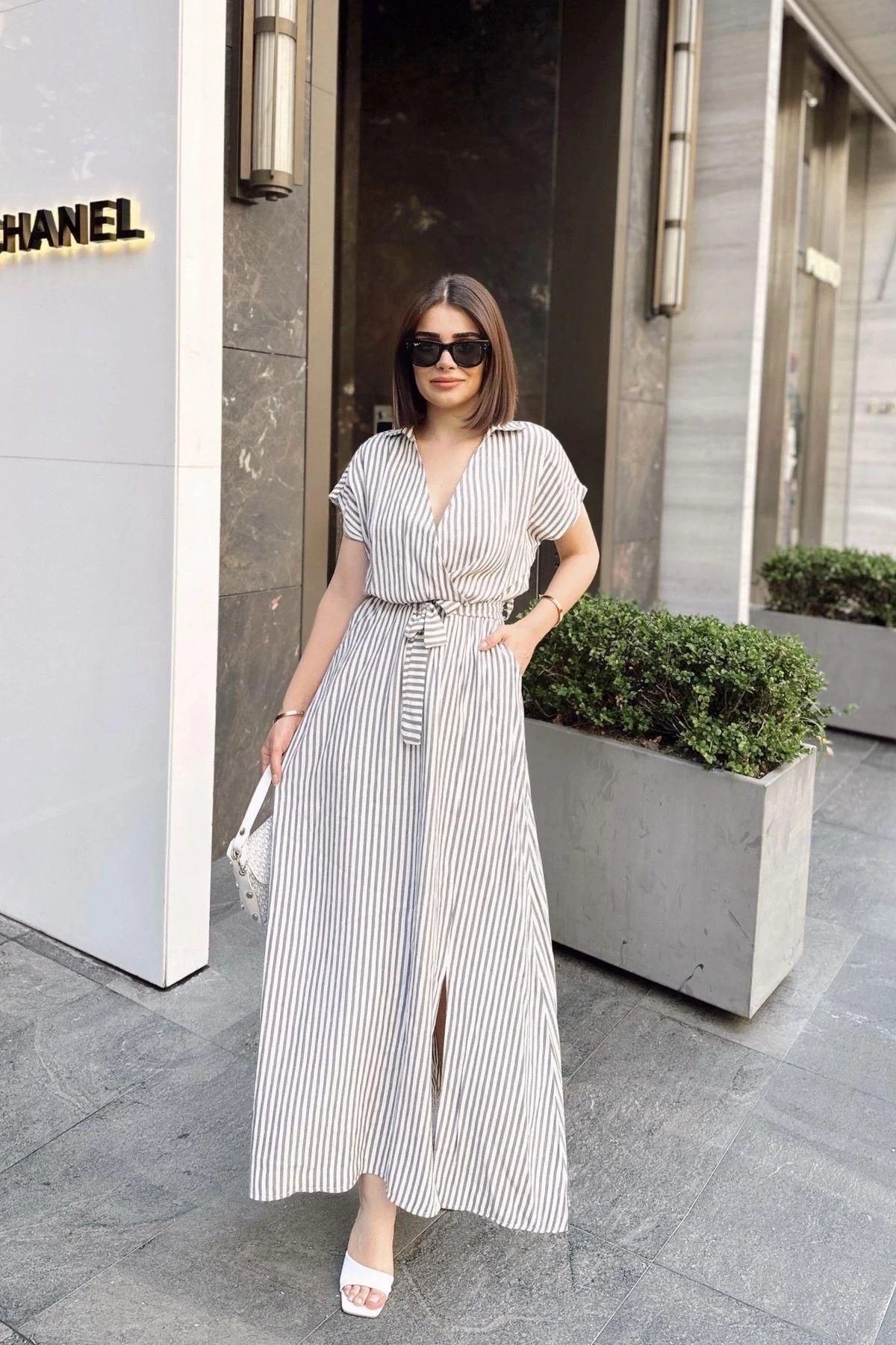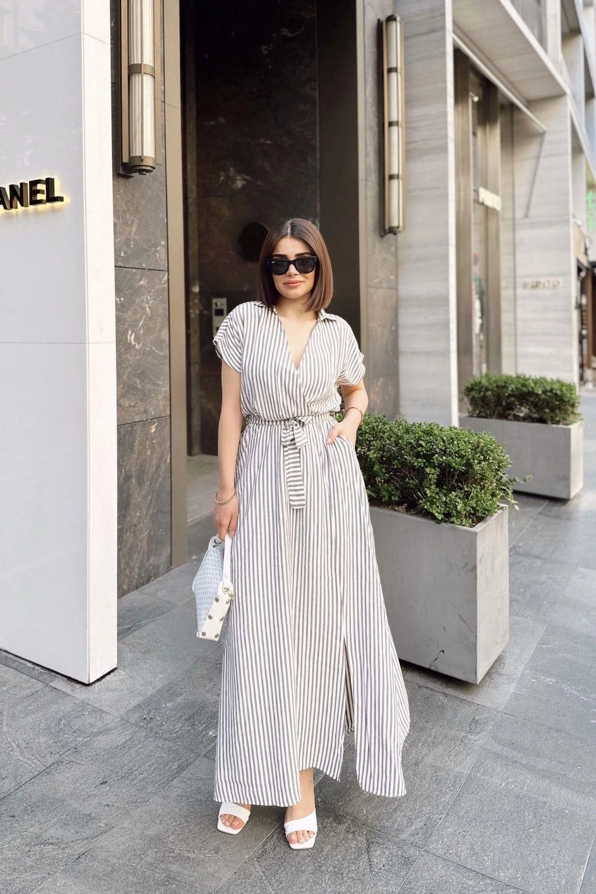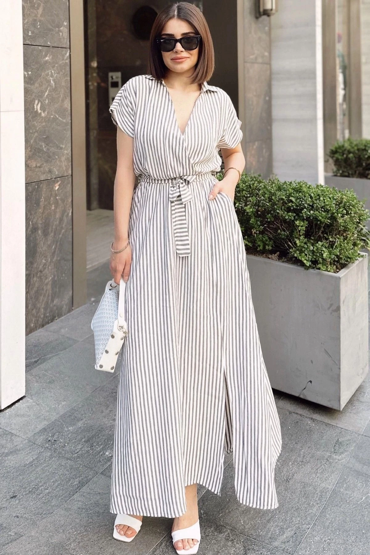 Bu Siyah & Ekru Kruvaze Polo Yaka, Kısa Kol, Çizgili Yazlık Kumaş, Yırtmaçlı, Kemerli/Kuşaklı, Maxi Uzun Elbise, zarif ve şık bir görünüm için mükemmel bir seçenektir.; %60 cotton %40 polyester kumaş yapısı, elbisenin rahatlık ve esneklik sunmasını sağlar.; Siyah ve ekru renklerin çizgili kombinasyonu, elbiseye modern bir dokunuş katar.; Kruvaze polo yaka detayı, sofistike bir tarz sunarken, kısa kol ise yaz aylarında serinlik ve hareket özgürlüğü sağlar.; Yırtmaçlı tasarım, feminen bir görünüm oluştururken, bacaklara zarif bir vurgu yapar.; Kemerli veya kuşaklı detaylar, belinizi vurgulayarak elbisenin şekillendirilmiş bir siluet oluşturmasına yardımcı olur.; Maxi uzunluk, zarafeti ve şıklığı bir araya getirirken, yazlık kumaş yapısı ise hafif ve nefes alabilen bir his sunar.; Bu Siyah & Ekru Kruvaze Polo Yaka, Kısa Kol, Çizgili Yazlık Kumaş, Yırtmaçlı, Kemerli/Kuşaklı, Maxi Uzun Elbise, özel etkinliklerden plaj günlerine kadar çeşitli fırsatlarda şık bir seçenektir.; Tarzınıza uygun aksesuarlarla tamamlayarak farklı görünümler elde edebilirsiniz.; Kendinizi özgür ve şık hissetmek istediğinizde bu elbiseyi tercih edebilirsiniz.; Yaz aylarında stilinizi yansıtmak ve dikkat çekici bir görünüm elde etmek için Siyah & Ekru Kruvaze Polo Yaka, Kısa Kol, Çizgili Yazlık Kumaş, Yırtmaçlı, Kemerli/Kuşaklı, Maxi Uzun Elbise mükemmel bir seçenektir.