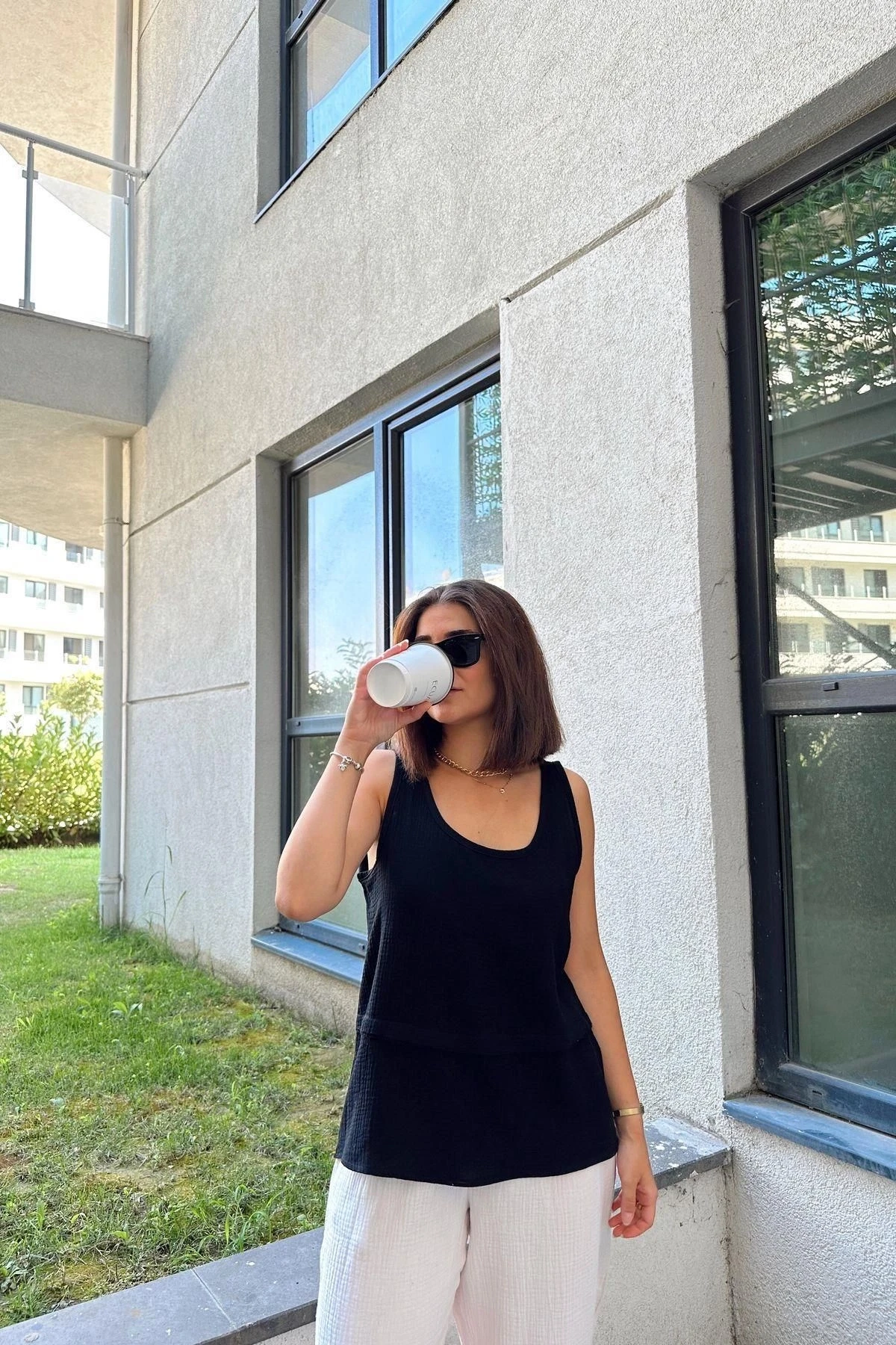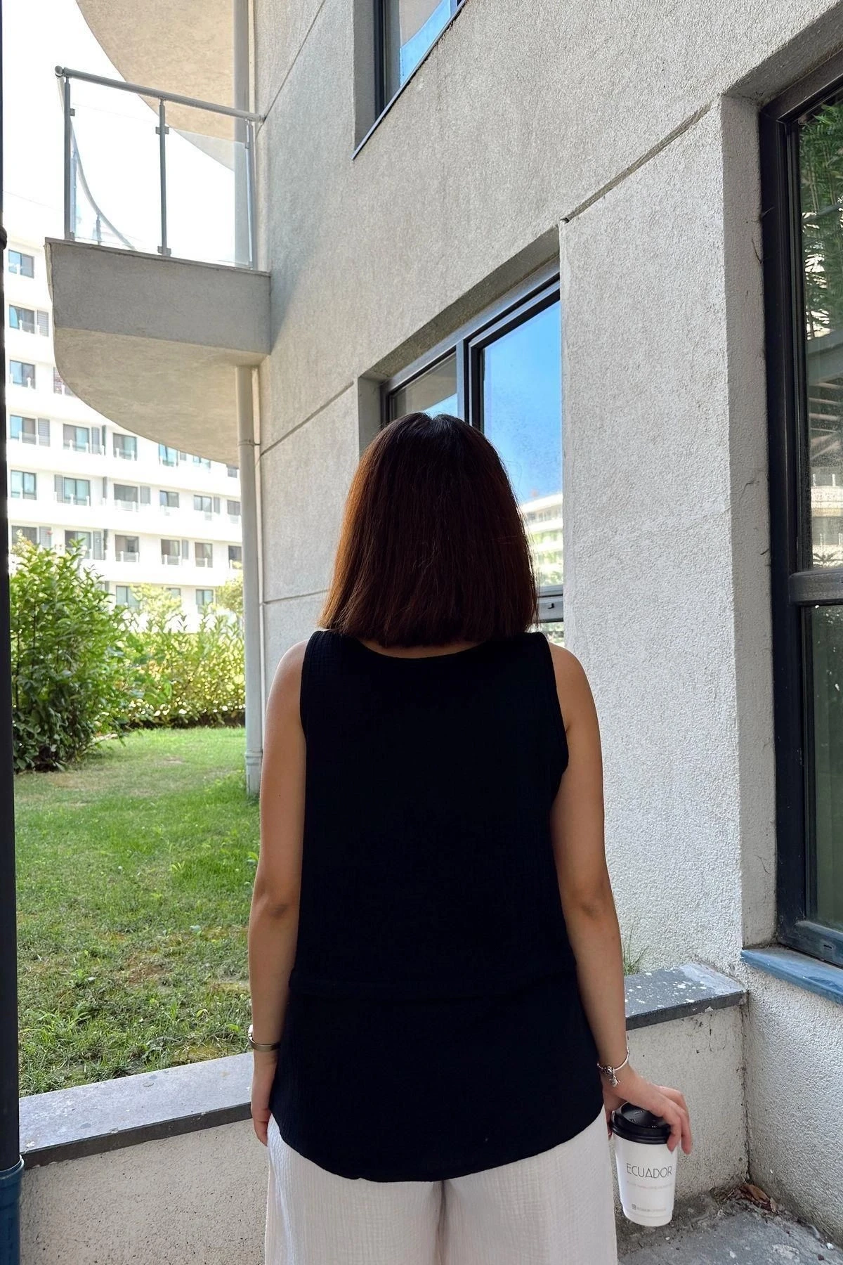 Siyah İthal Müslin Kumaş, Basic, Katlı, Salaş Askılı Bluz & Atlet ile tarzınıza sofistike bir dokunuş katın.; Bu özel tasarım bluz ve atlet kombinasyonu, rahatlığı ve zarifliği bir araya getirir, dolayısıyla her zaman şık ve özgün görünmenizi sağlar.; %100 pamuk kumaşın kullanımı, bluzun ve atletin yumuşak ve nefes alabilir bir his sunmasını sağlar.; İthal müslin kumaşın tercih edilmesi, ürüne özgün bir doku ve kalite katmıştır.; Basic kesim, sade ve zamanın ötesinde duran bir tarz yaratır.; Katlı tasarım, bluzun salaş ve hafif bir görünüm kazanmasına yardımcı olurken aynı zamanda zarif bir detay ekler.60 cm uzunluğu, bluzun ve atletin çeşitli alt parçalarla kolayca kombinlenebilmesini sağlar.; Bu uzunluk, farklı stiller yaratma özgürlüğü sunar.; Siyah rengi, şıklığı ve asaleti temsil eder.; Her türlü kombinle uyum sağlayarak kullanım kolaylığı sunar.; Bu bluz ve atlet kombinasyonuyla hem gündelik hem de özel anlarda tarzınızı yansıtabilirsiniz.; Siyah İthal Müslin Kumaş, Basic, Katlı, Salaş Askılı Bluz & Atlet ile gardırobunuzda özel bir yer edinin.; Bu kombinasyon, şıklık ve rahatlığı bir araya getirerek tarzınızı yansıtmanızı sağlayacak.