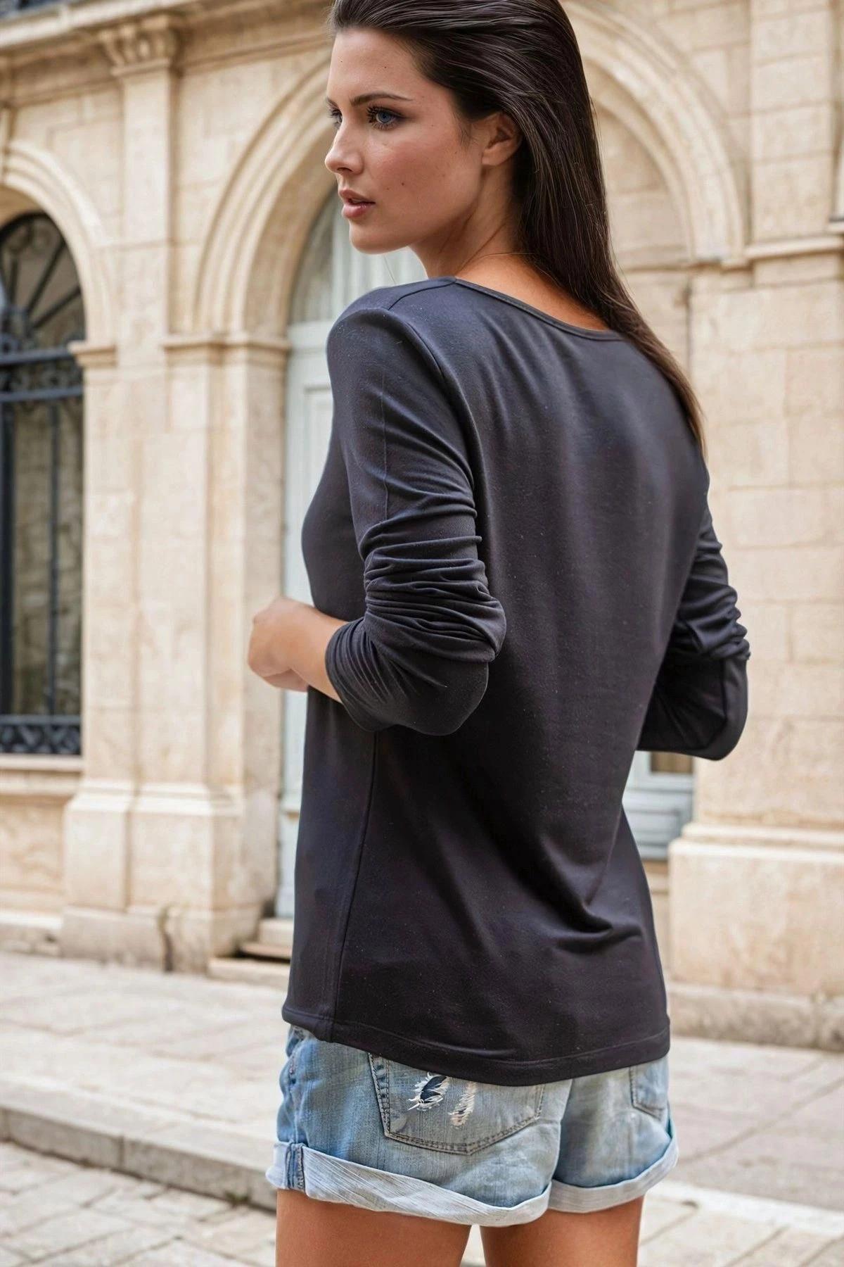 Siyah Kare Yaka, Uzun Kollu, Basic Bluz