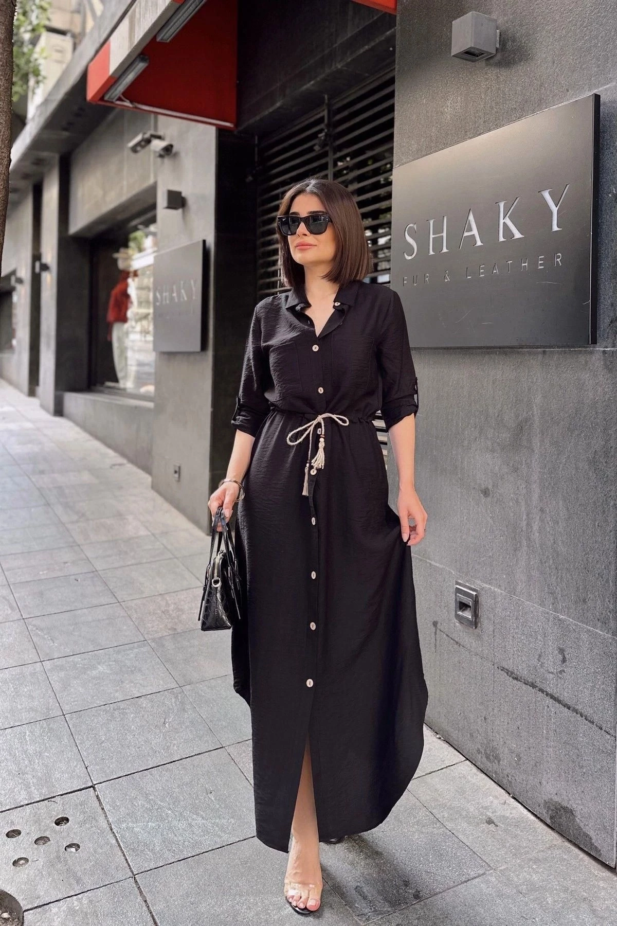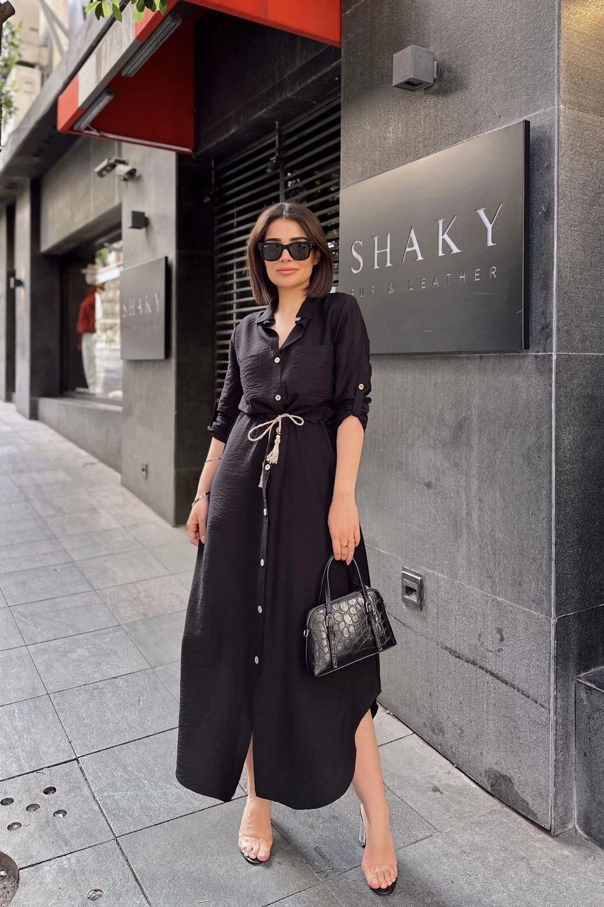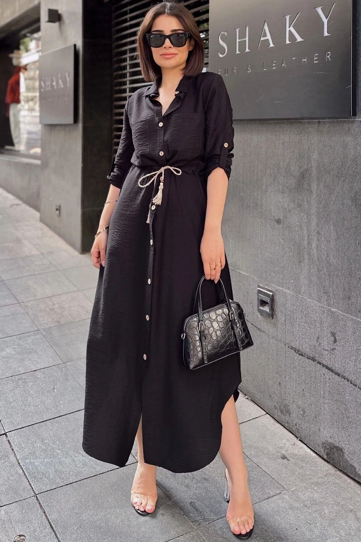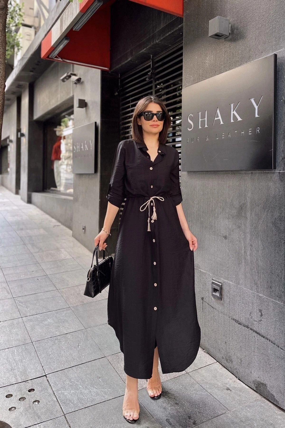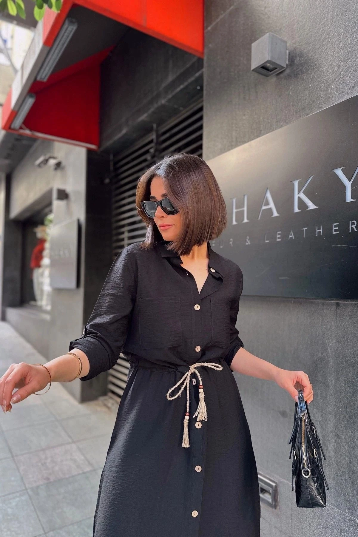 Bu Siyah Katlamalı Uzun Kol, Keten/Airobin Kumaş, Beli Büzgülü, Hasır Kemerli Uzun Gömlek Elbise, şıklık ve zarafeti bir araya getiren bir seçenektir.; %60 cotton %40 polyester kumaş yapısıyla elbise, konforlu bir kullanım sunar.; Siyah renk, elbiseye sofistike ve şık bir hava katar.; Katlamalı uzun kollu tasarım, hem modern bir görünüm sağlar hem de elbisenin tarzını vurgular.; Keten/airobin kumaş, hafif ve nefes alabilen bir yapıya sahiptir, bu sayede yaz aylarında serin tutar.; Beli büzgülü detay, elbisenin bel kısmına feminen bir vurgu yapar ve vücut hatlarını öne çıkarır.; Hasır kemeri, elbiseye doğal ve bohem bir dokunuş katarak tarzınızı tamamlar.; Siyah Katlamalı Uzun Kol, Keten/Airobin Kumaş, Beli Büzgülü, Hasır Kemerli Uzun Gömlek Elbise, hem günlük giyimde hem de özel davetlerde şıklığınızı tamamlayacak bir parçadır.; Rahat kalıbı sayesinde hareket özgürlüğü sunar ve gün boyu konforlu bir şekilde giyebilirsiniz.; Bu elbise, kaliteli kumaşı, şık tasarım detayları ve zarif kesimiyle dikkat çeker.; Siyah Katlamalı Uzun Kol, Keten/Airobin Kumaş, Beli Büzgülü, Hasır Kemerli Uzun Gömlek Elbise ile hem stilinizi ifade edebilir hem de sofistike bir görünüm elde edebilirsiniz.; Farklı aksesuarlar ve ayakkabılarla kombinleyerek özgün tarzlar yaratabilirsiniz.