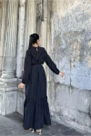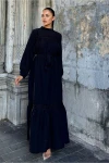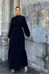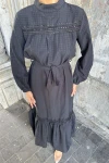 Siyah Kuşaklı, Dantel Detaylı, Maksi Lotus Elbise