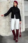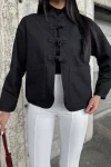 Siyah Önden Bağlamalı, Cep Detaylı, Oval Kesim, Salaş Kot Ceket