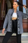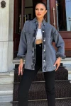 Siyah Oversize Cepli Düğmeli Denim Ceket Gömlek