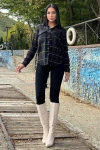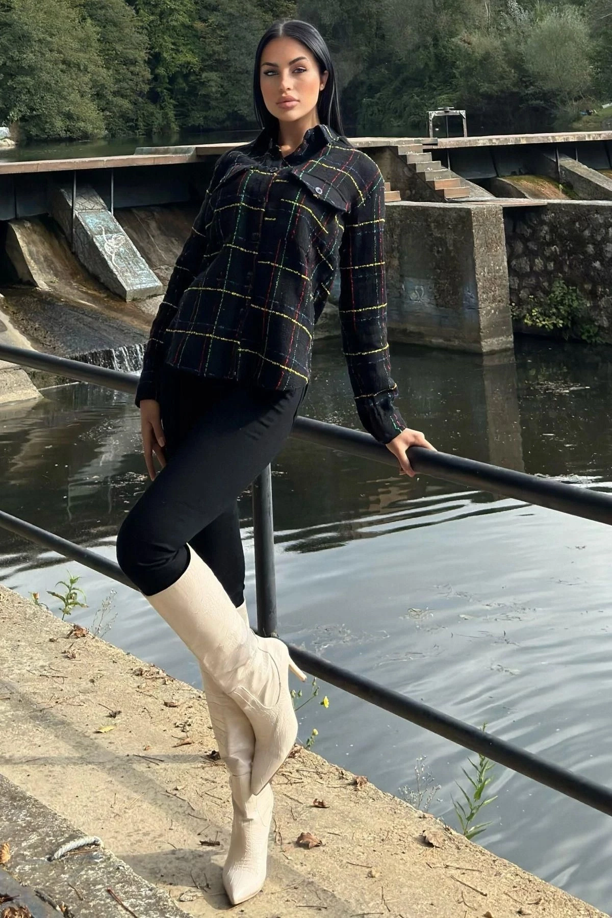 Siyah & Renkli Ekose Tüvit Kumaş, Çift Cepli, Uzun Salaş Gömlek Ceket