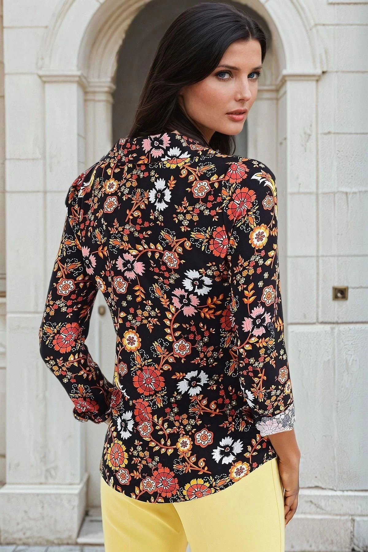 Siyah Sarı, Çiçek Desenli, Klasik Gömlek