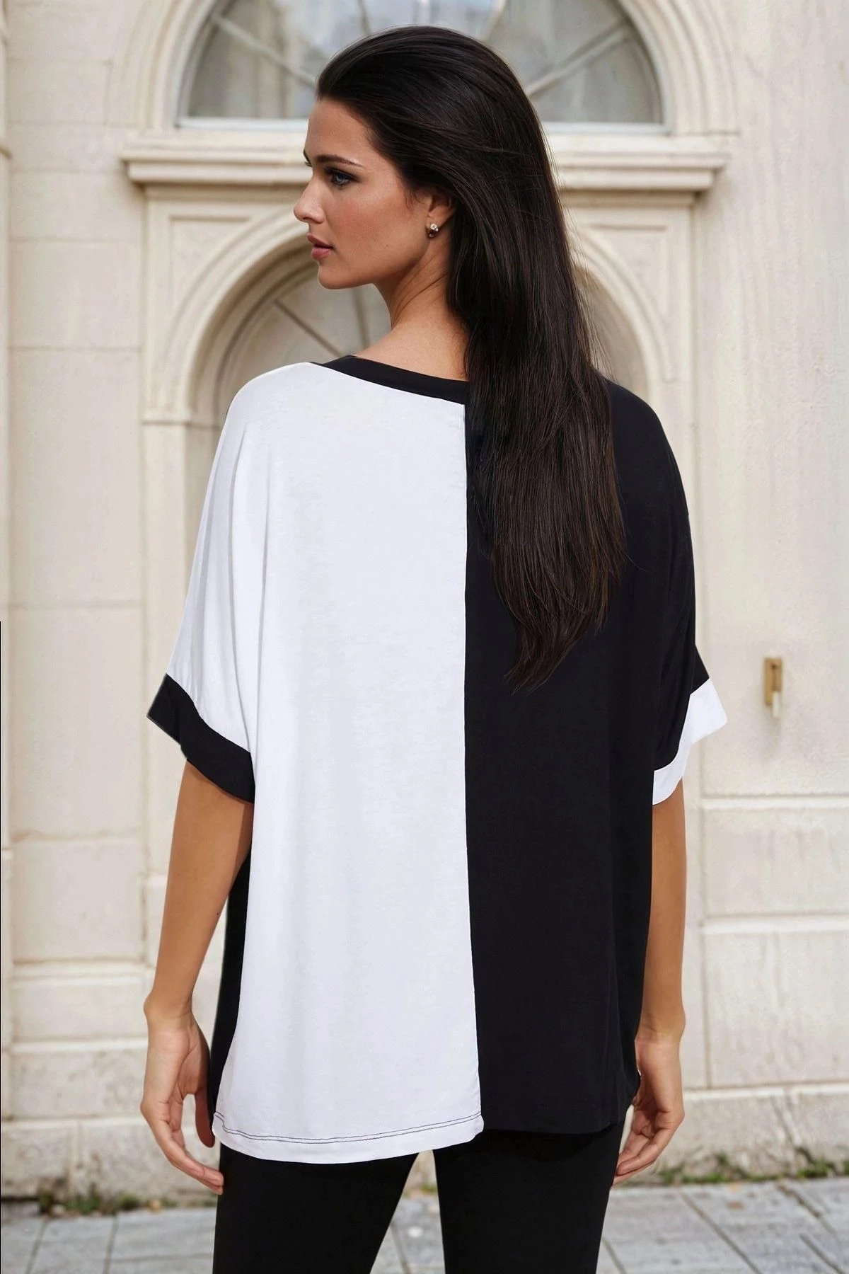 Siyah V Yaka, Renk Bloklu, Basic Bluz