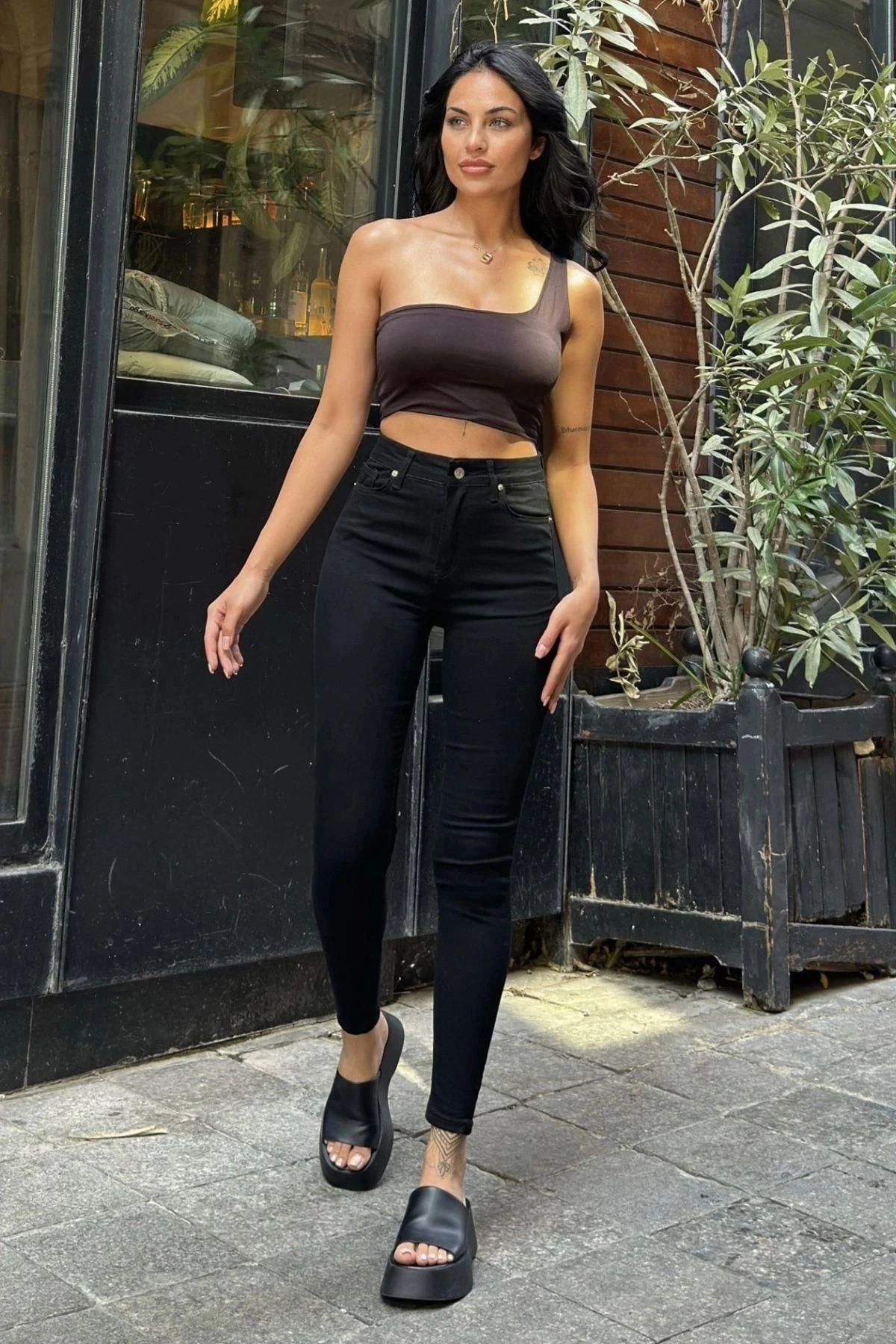 Siyah Yüksek Bel Skinny Jean Pantolon