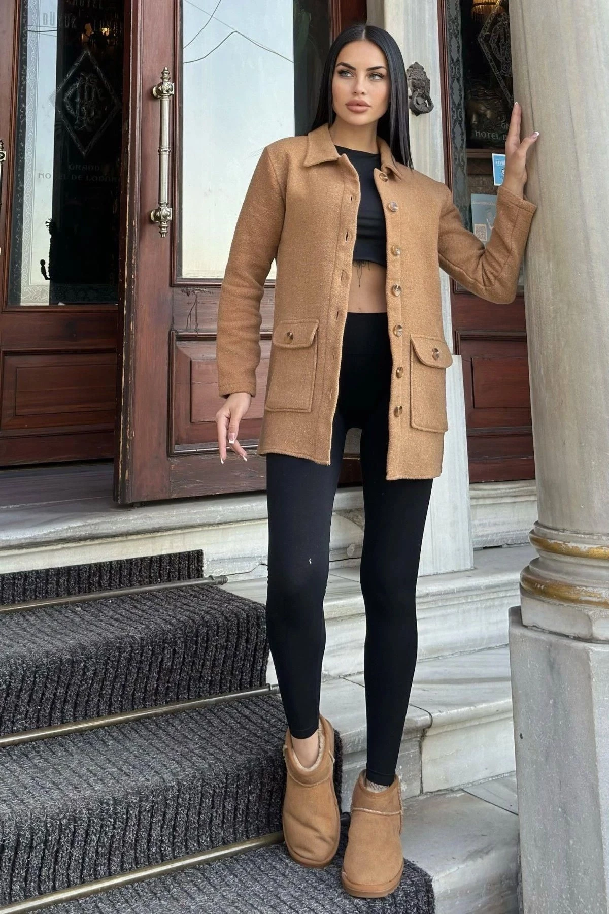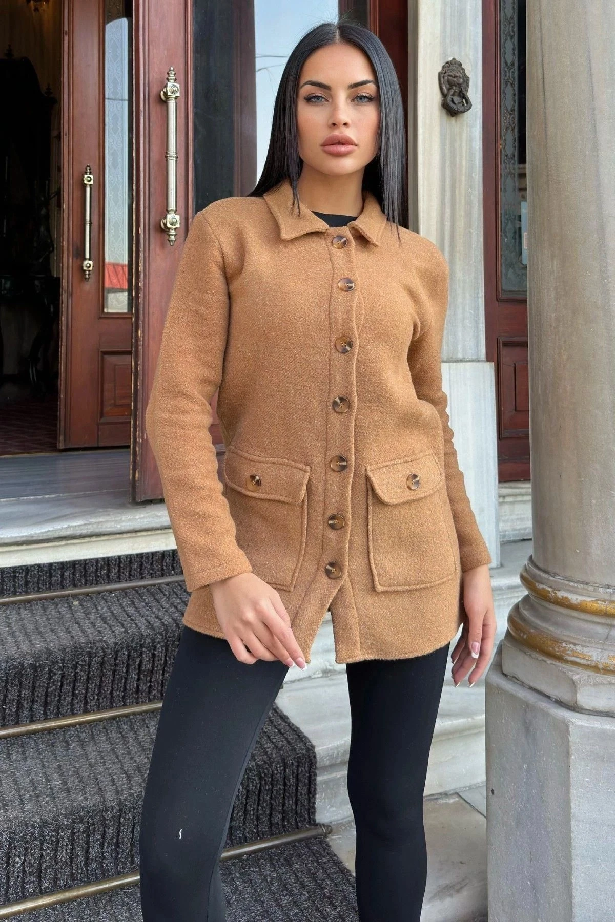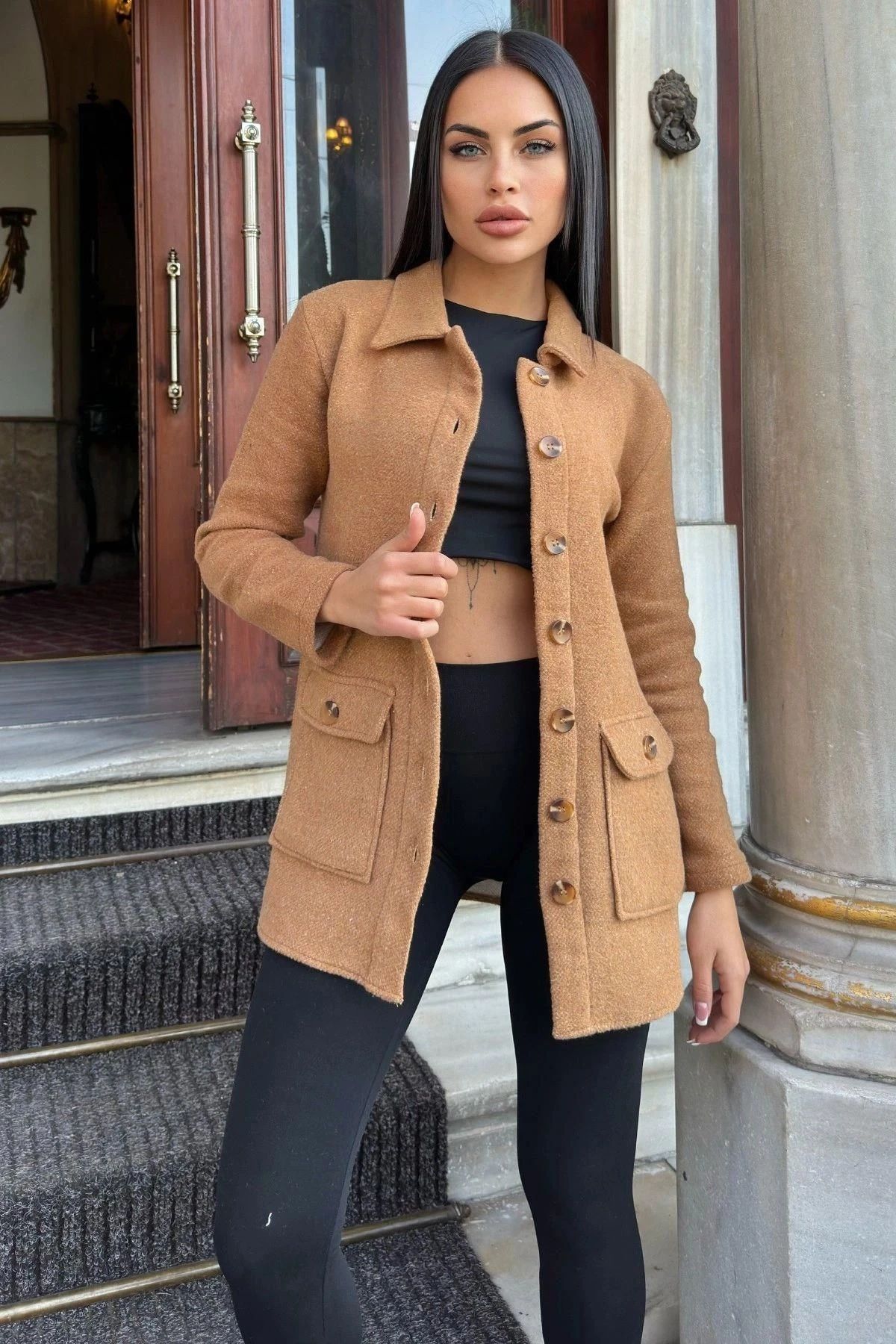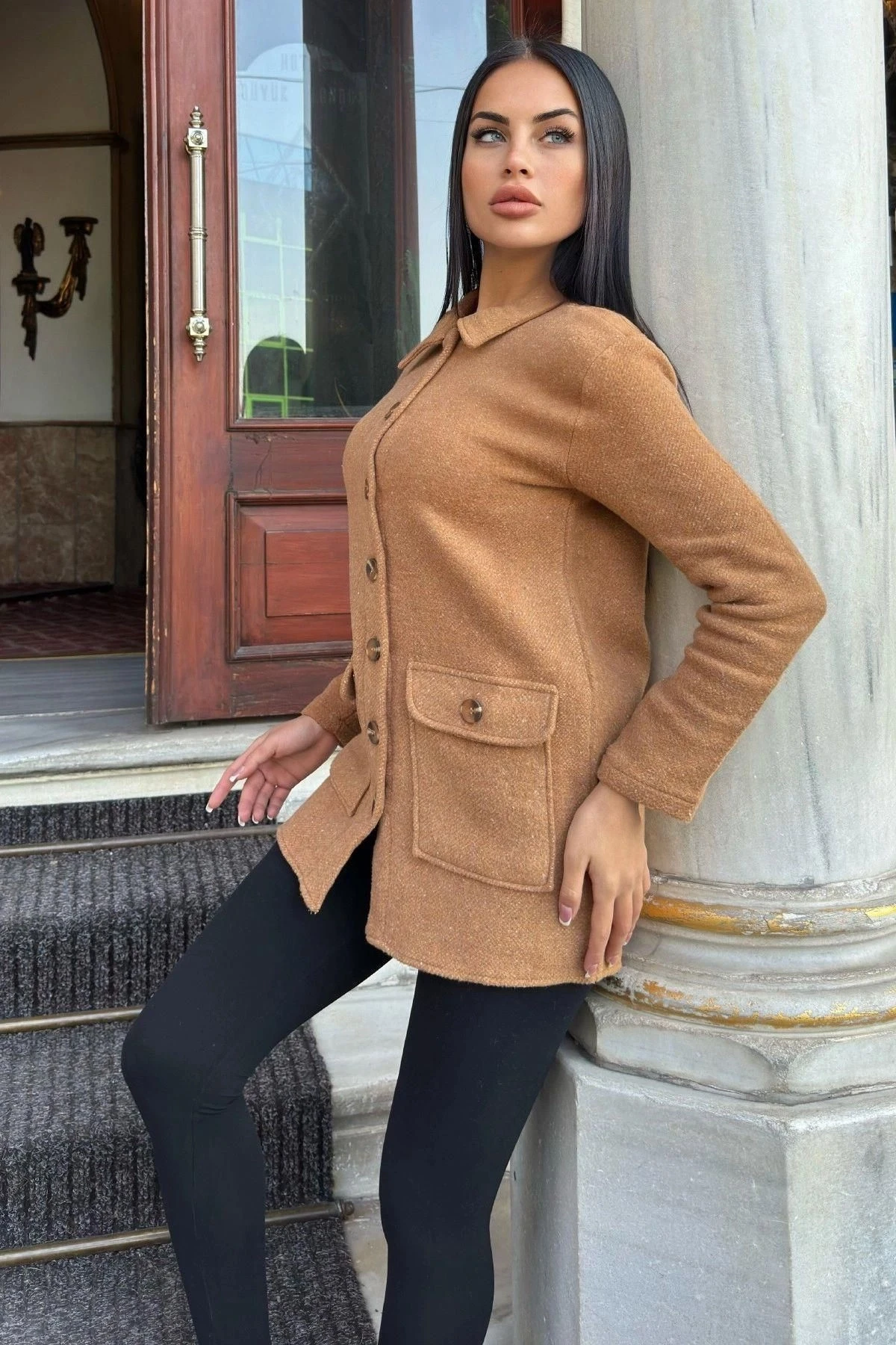 Taba Çift Cepli, Yumuşak Dokulu Uzun Kaşe Ceket