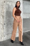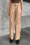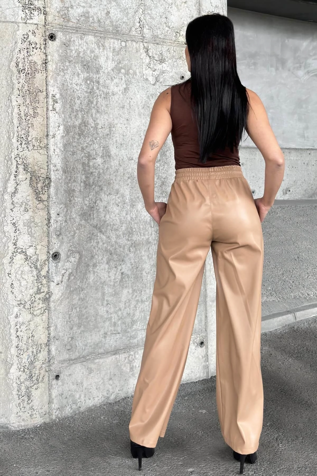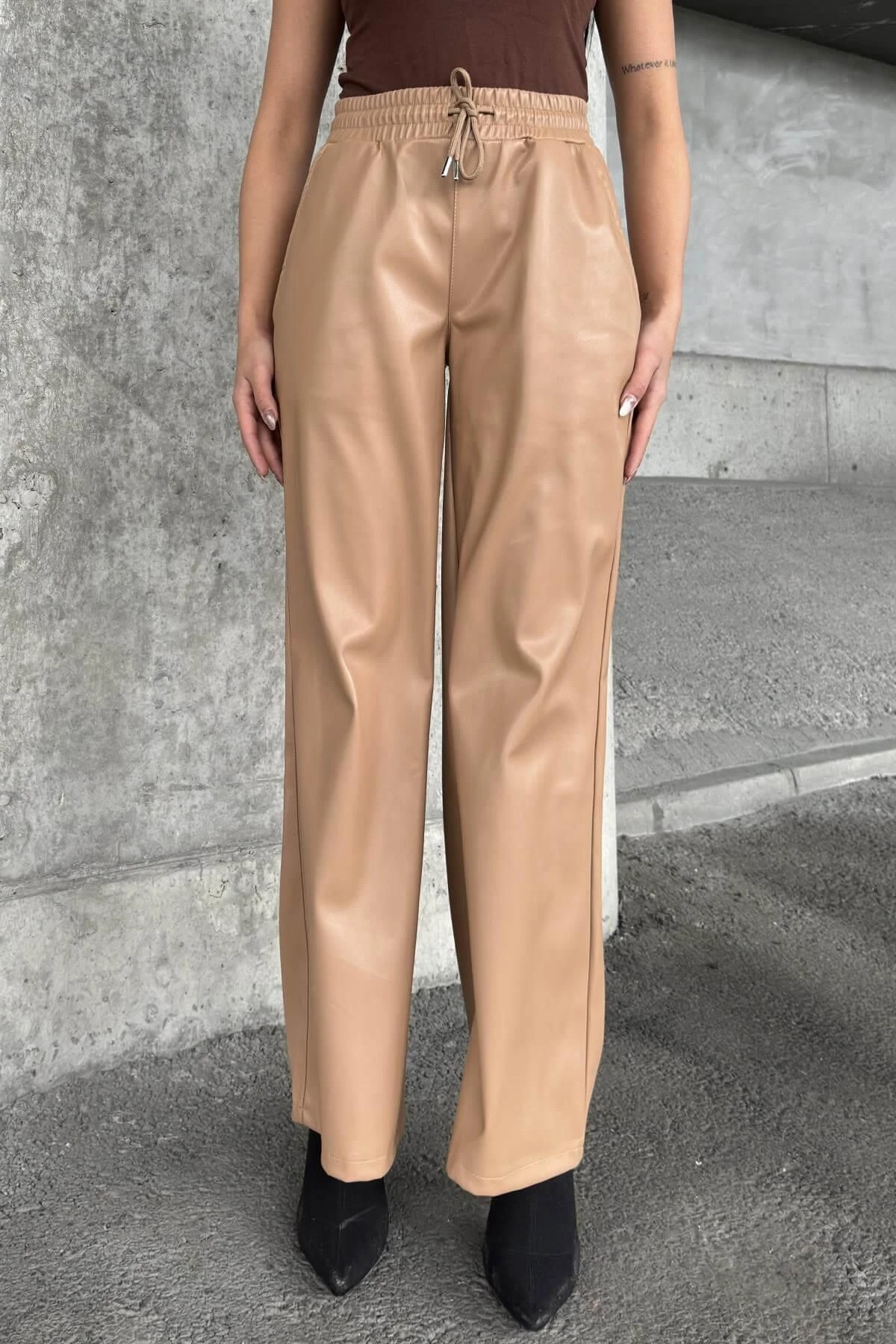 Taba Lastikli Yüksek Bel, Cepli, Bol Paça, Salaş Deri Pantolon - Tesettüre Uygun