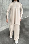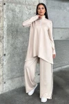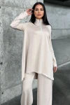 Taş Asimetrik Kesim, Fermuarlı Bluz & Bol Paça Pantolon - Viskon İki İplik Kumaş Alt & üst Takım