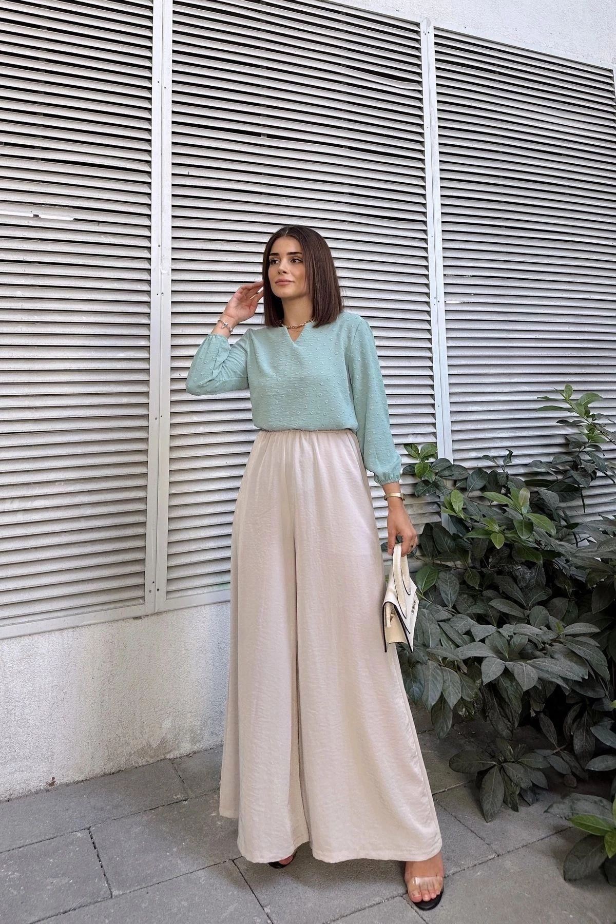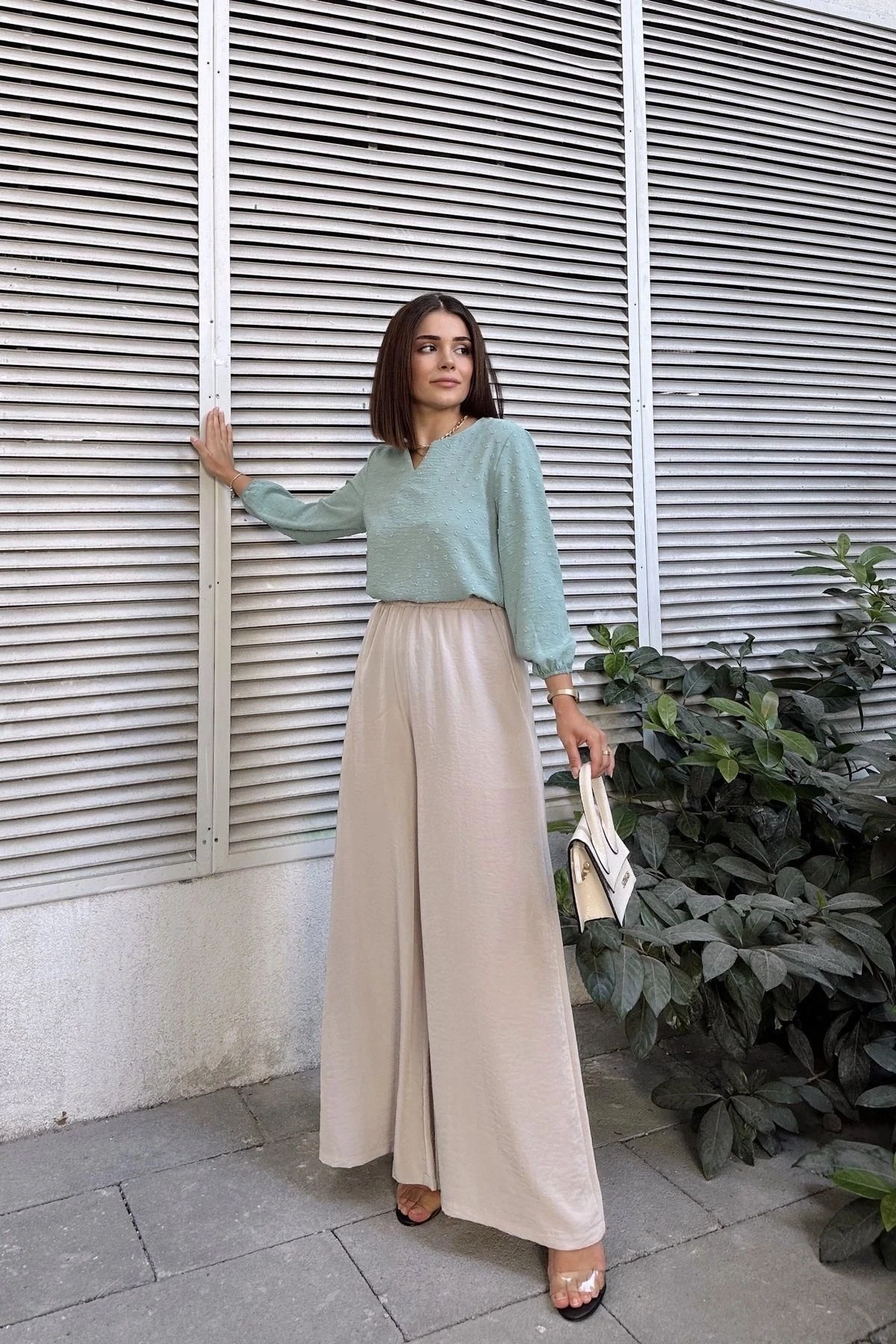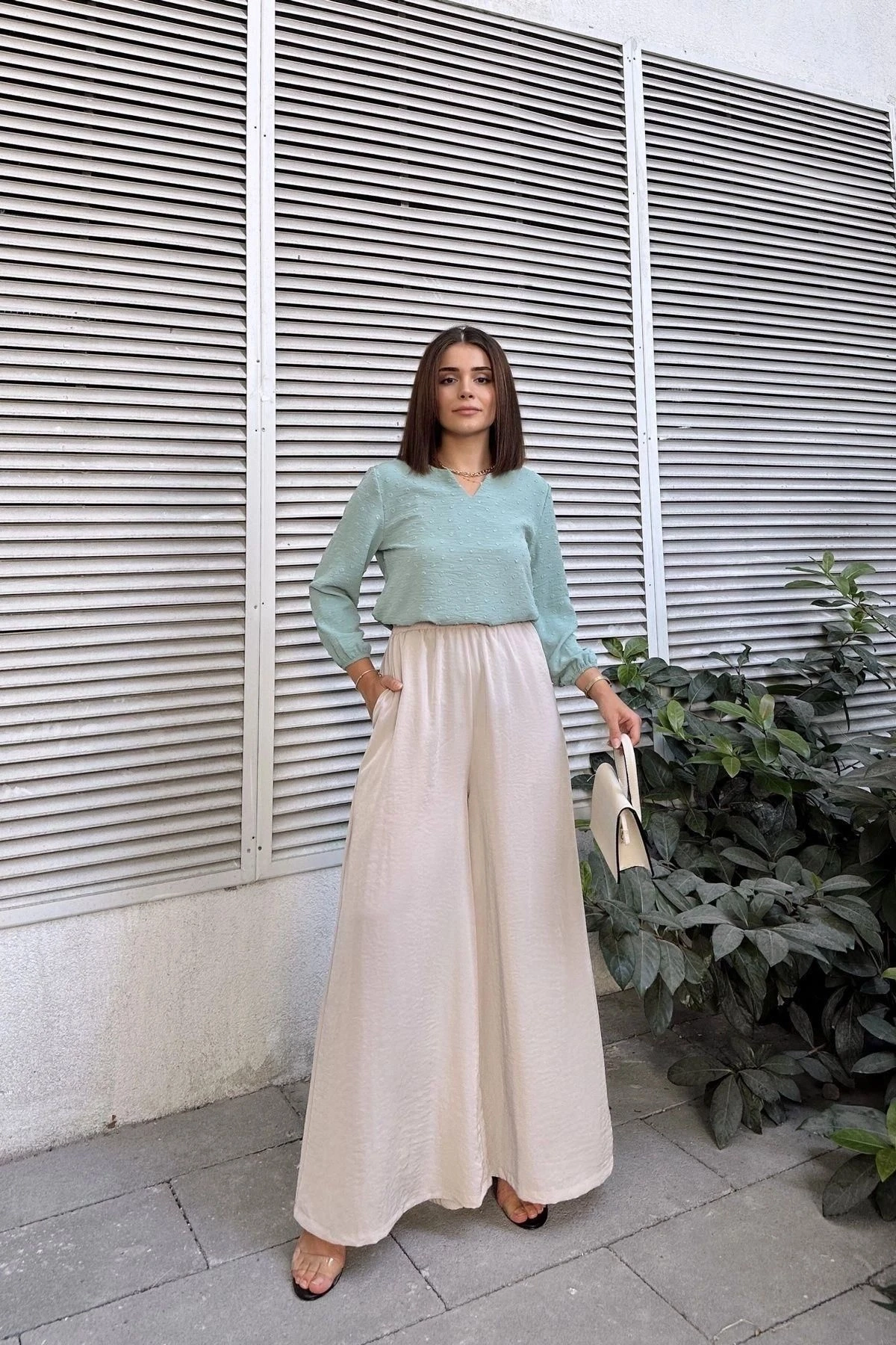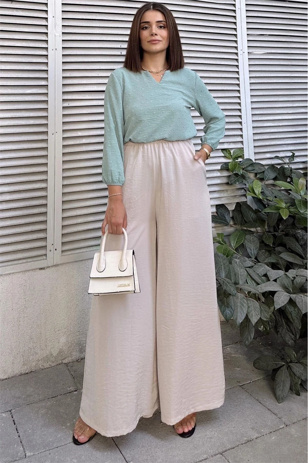 Taş Beli Lastikli, Cepli, İspanyol / Bol Paça Özel Kumaş, Rahat Kalıp Pantolon ile şıklığı ve rahatlığı bir arada yaşayın.; Bu ürün, modern tasarımı ve tesettür uygunluğu ile öne çıkan bir seçenektir.; %60 polyester ve %40 cotton karışımı kumaş, pantolonunuzun uzun ömürlü olmasını sağlarken aynı zamanda hafiflik ve rahatlık sunar.; Bu malzeme seçimi, pantolonunuzu uzun süre kullanmanıza imkan verirken, nefes alabilirliği de korur.; Beli lastikli tasarım, pantolonun rahatça giyilmesini sağlamakla birlikte belinizi sıkıca sararak oturmasını sağlar.; Bu da hareket özgürlüğünüzü korumanızı sağlar.; Cepli tasarım, günlük eşyalarınızı taşımanızı kolaylaştırırken, pantolonun işlevselliğini artırır.; İspanyol / bol paça kesimi ise hem modern bir görünüm sunar hem de rahatlık sağlar.102 cm uzunluğu, farklı bedenlere uyum sağlamakla kalmaz, aynı zamanda tesettür giyim gereksinimlerine de uygun bir seçenektir.; Taş rengi, doğal ve sakin bir görünüm yaratırken, kombinlerinizle kolayca uyum sağlar.; Bu renk, her mevsim ve her tarza uyum sağlayabilir.; Taş Beli Lastikli, Cepli, İspanyol / Bol Paça Özel Kumaş, Rahat Kalıp Pantolon ile günlük hayatta şıklığınızı ve rahatlığınızı bir arada tutun.; Hem modern tasarımı hem de tesettüre uygunluğu ile bu pantolon, gardırobunuzun vazgeçilmezi olabilir.