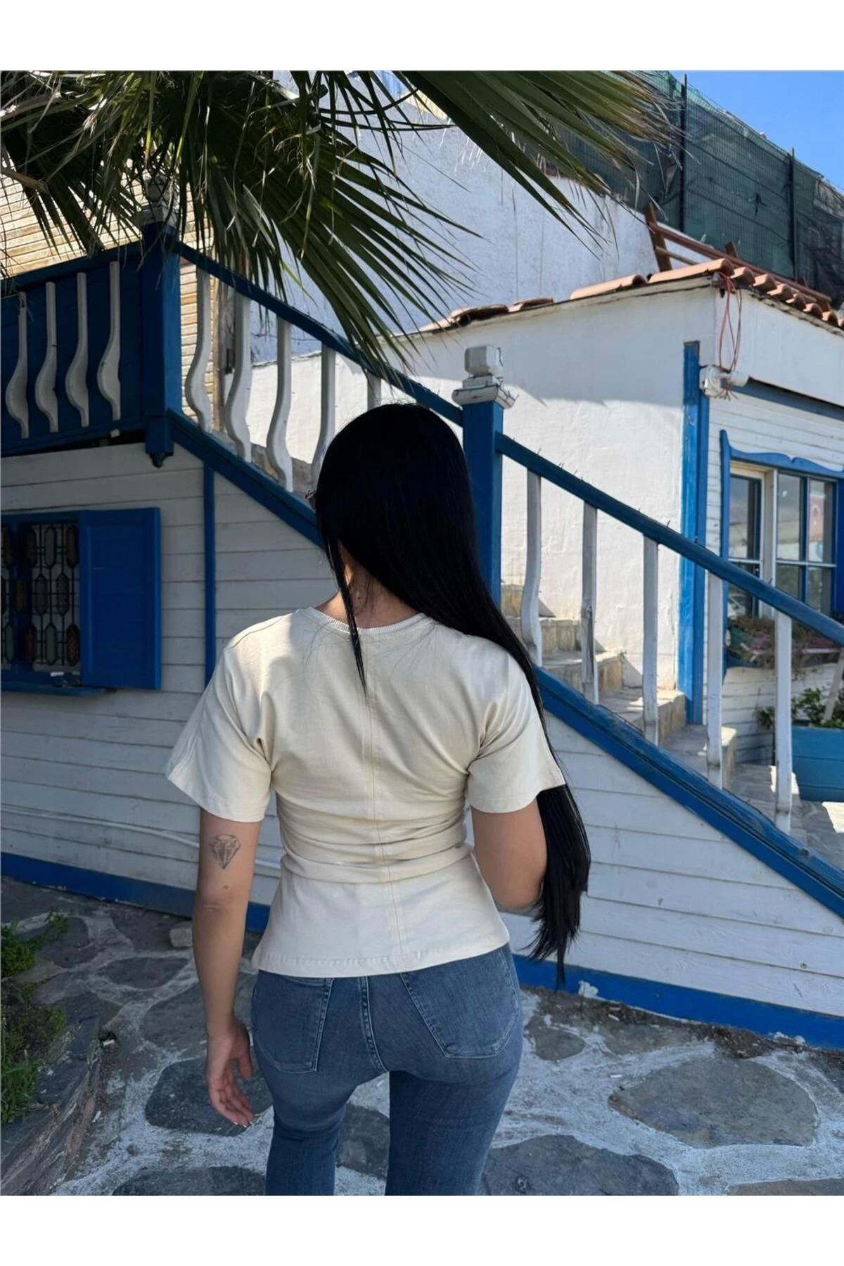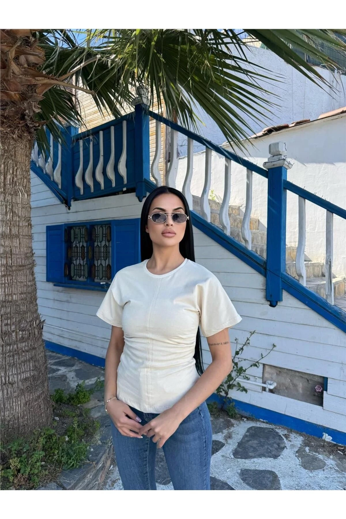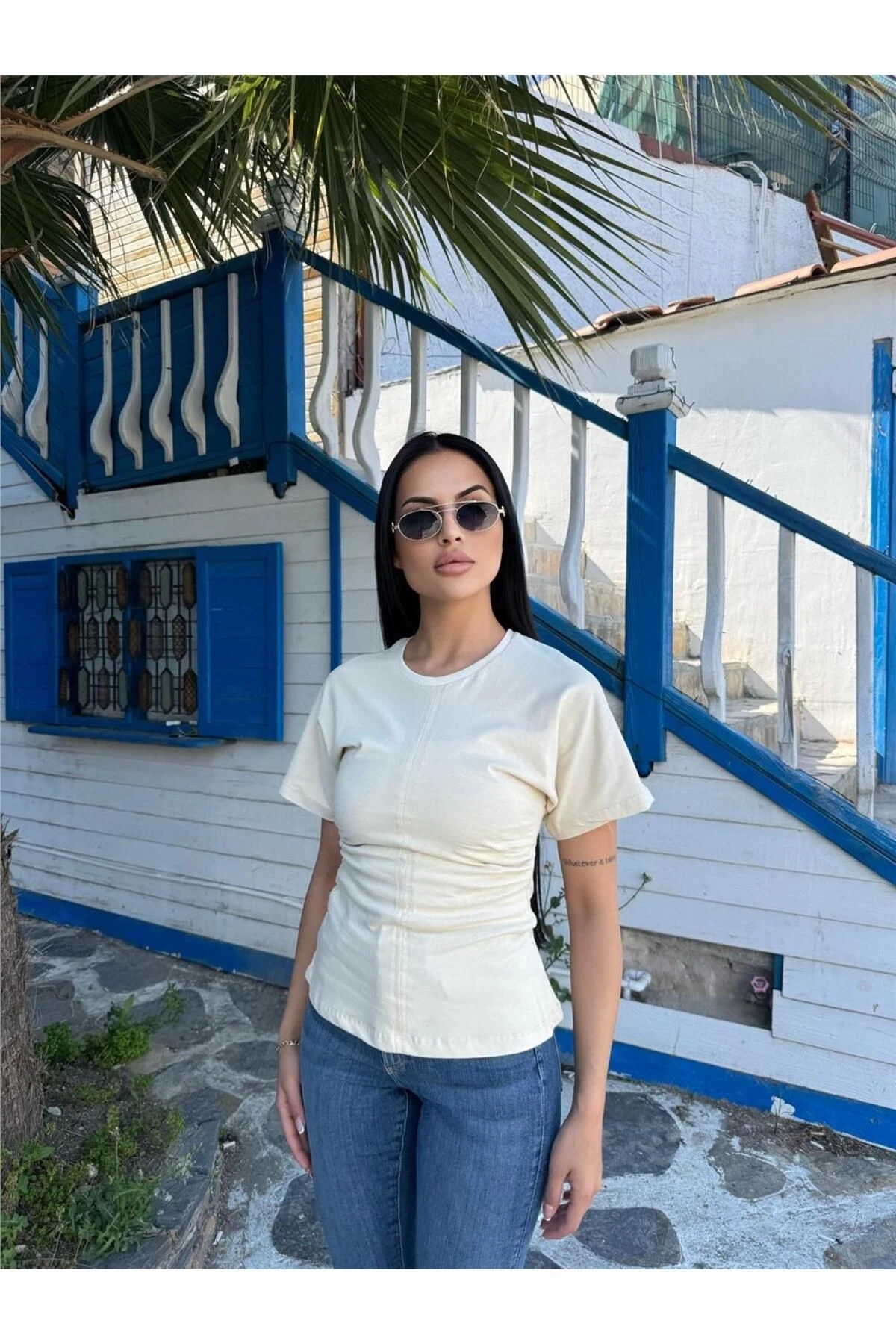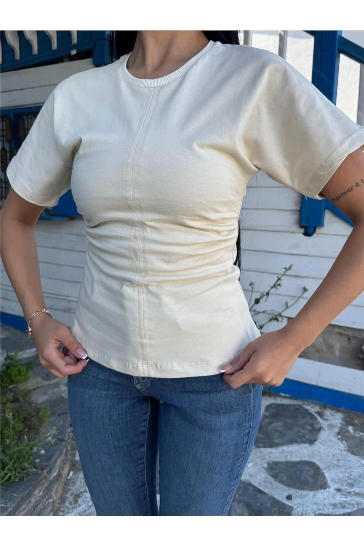 Taş Viskon Karışımlı Yandan Büzgülü Bluz
