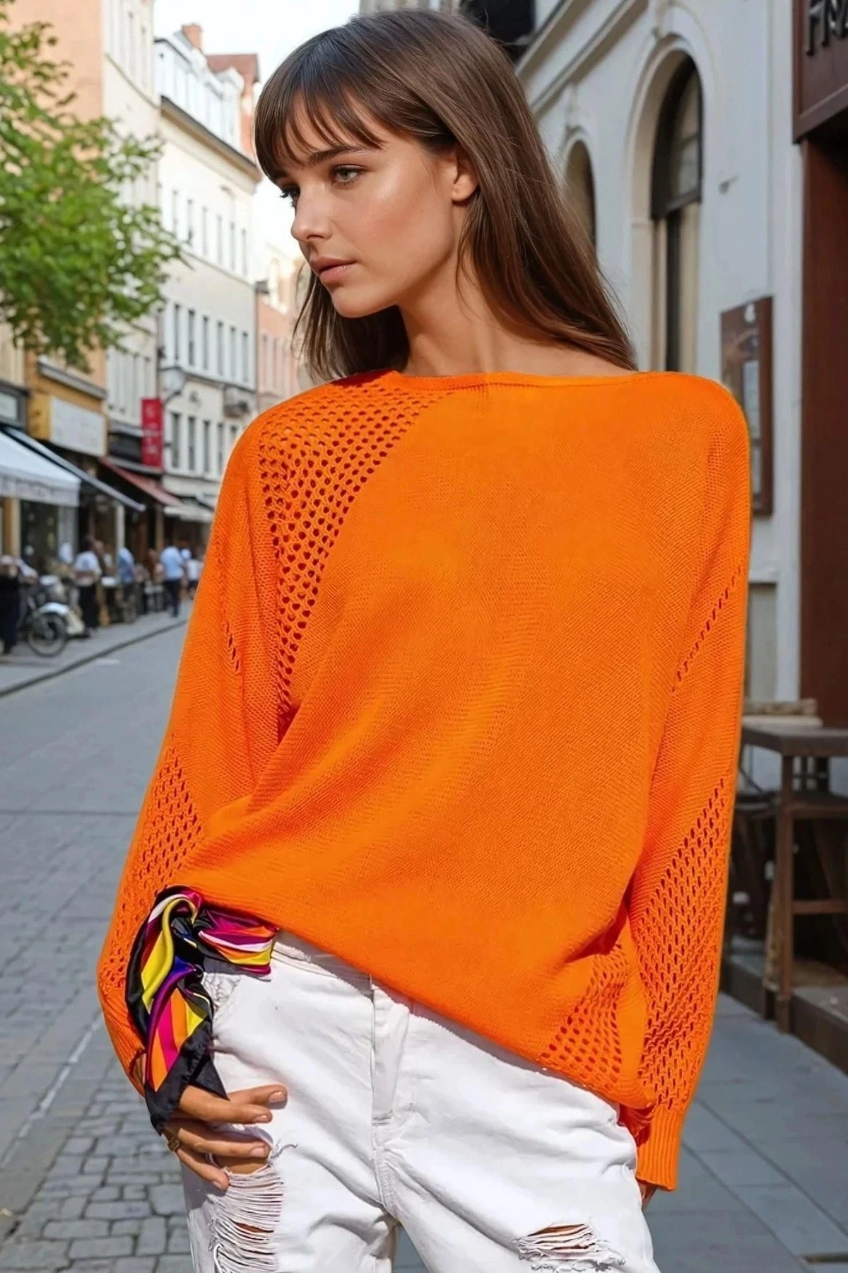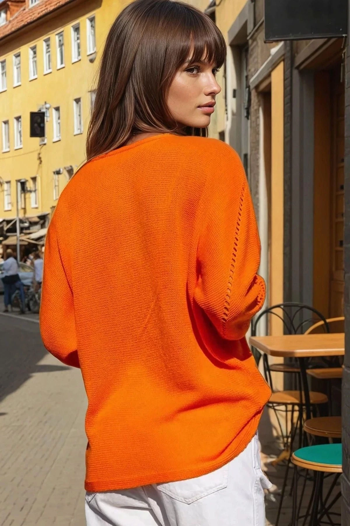 Turuncu Ajurlu Yarasa Kol Salaş Triko Kazak