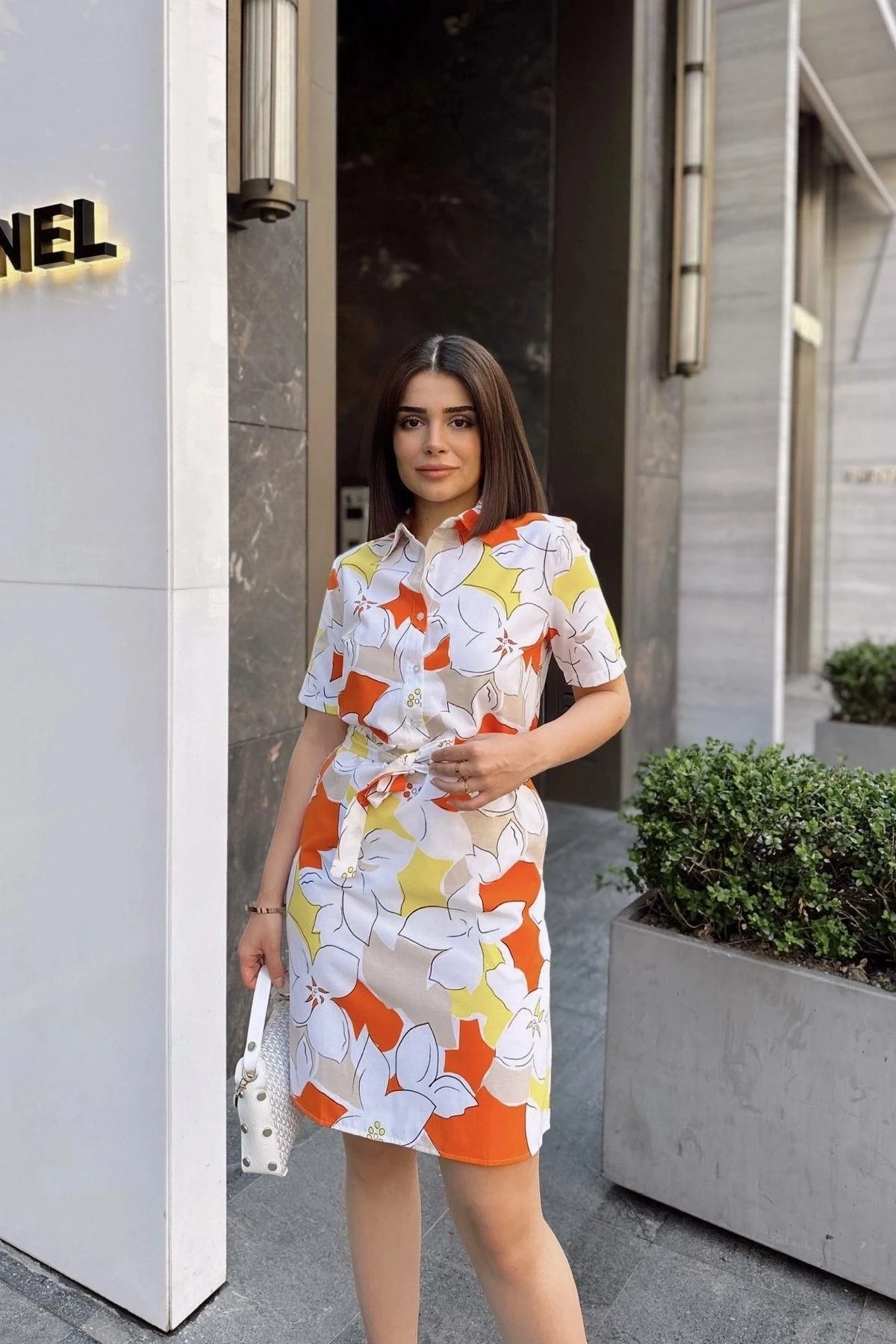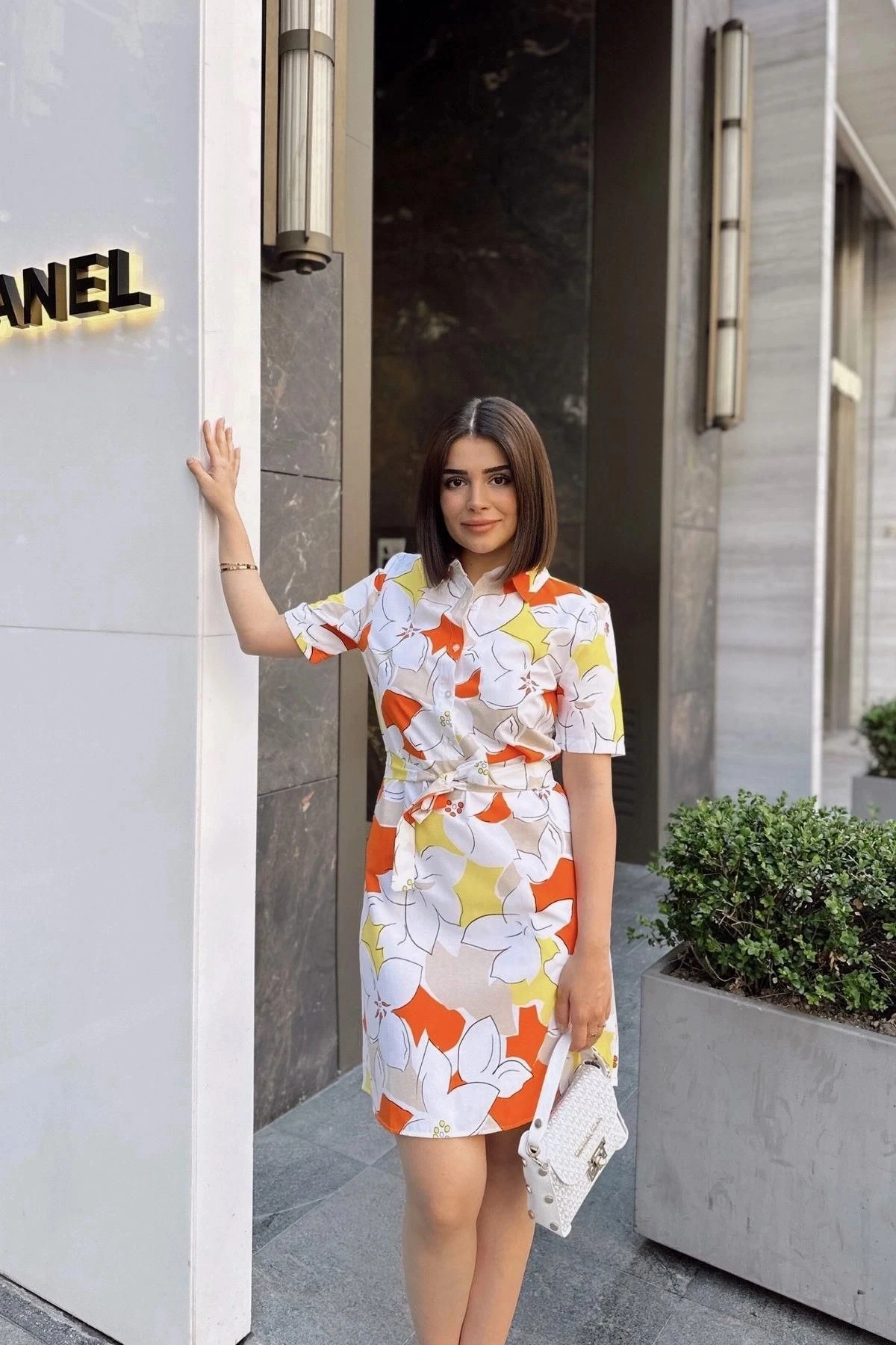 Turuncu & Beyaz Kısa Kol, Desenli Poplin Kumaş, Bele Oturan Kesim, Yarım Patlı, Kemerli/Kuşaklı, Midi Elbise, canlılık ve şıklığı bir araya getiren bir seçenektir.; Bu elbise, %80 Pamuk ve %20 Polyester karışımından üretilmiş desenli poplin kumaşıyla dikkat çeker.; Turuncu ve beyaz renkleri, enerjik ve canlı bir görünüm sağlarken, kısa kollar ve midi uzunluk elbiseye yazın ferah bir his katmaktadır.; Desenli poplin kumaş, elbiseye özgün bir tarz ve görsel çekicilik sağlar.; Bele oturan kesim, figürünüzü güzelce vurgulayarak kadınsı bir siluet oluşturur.; Yarım patlı detayı ve kemerli/kuşaklı tasarımı ise elbiseye şıklık katar.; Bu midi elbise, özgün ve stil sahibi bir görünüm elde etmek isteyenler için mükemmel bir seçimdir.; Özel etkinliklerden günlük gezmelere kadar birçok farklı durumda kullanabilirsiniz.; %80 Pamuk ve %20 Polyester karışımı, kaliteli bir kumaş sunar.; Pamuk, yumuşaklık, nefes alabilirlik ve cilt dostu özellikler sağlarken, polyester kumaş dayanıklılık ve esneklik özellikleriyle konforunuzu artırır.; Turuncu & Beyaz Kısa Kol, Desenli Poplin Kumaş, Bele Oturan Kesim, Yarım Patlı, Kemerli/Kuşaklı, Midi Elbise, gardırobunuzun özgün ve şık parçalarından biri olacak.; Şıklığı ve rahatlığı bir arada sunan bu elbise, her an ve her durumda tarzınızı tamamlayacak ve sizi özel hissettirecektir.