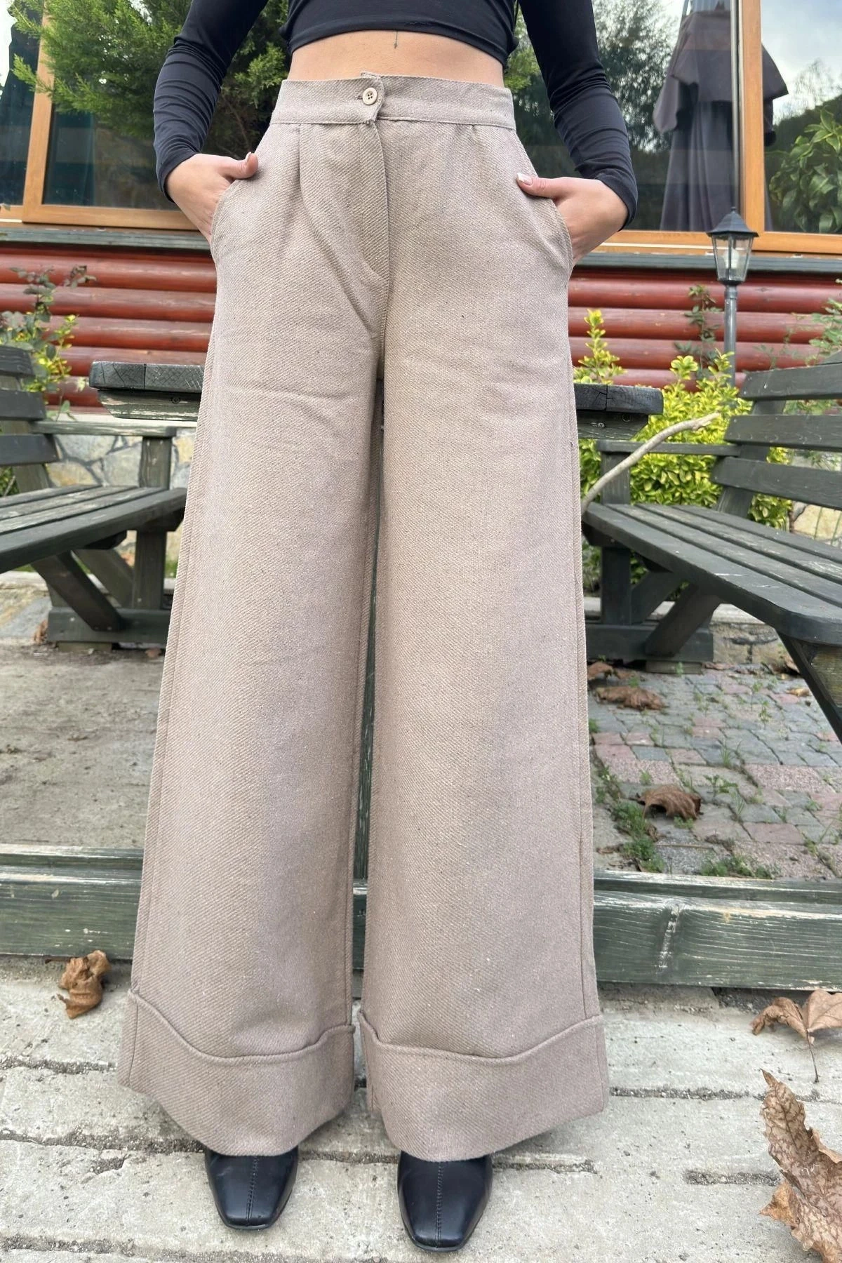Vizon Duble Paça, Beli Pliseli, Fitilli Kaşe Kumaş, İspanyol Pantolon
