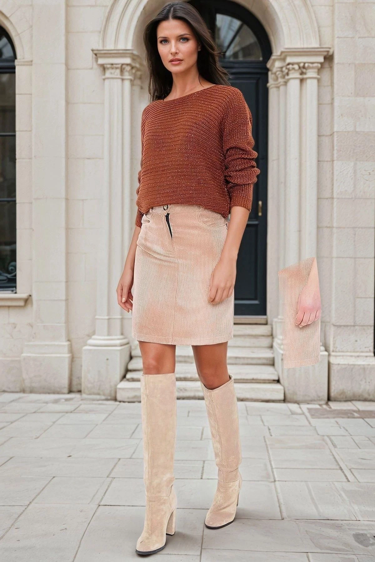 Vizon Kadife Kumaş, Düz Kesim, Mini Etek