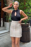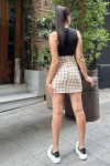 Vizon Kareli Yüksek Bel Mini Etek