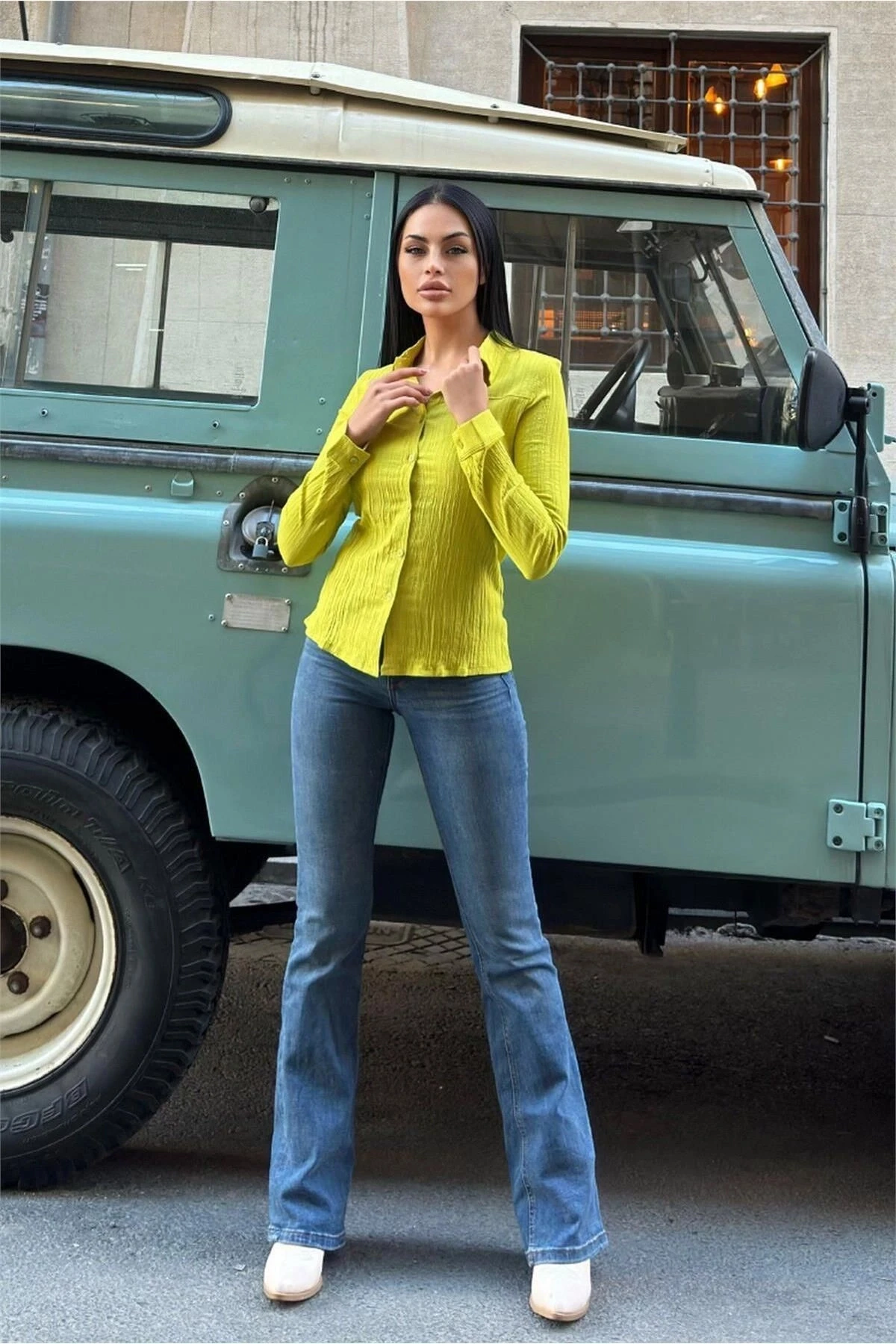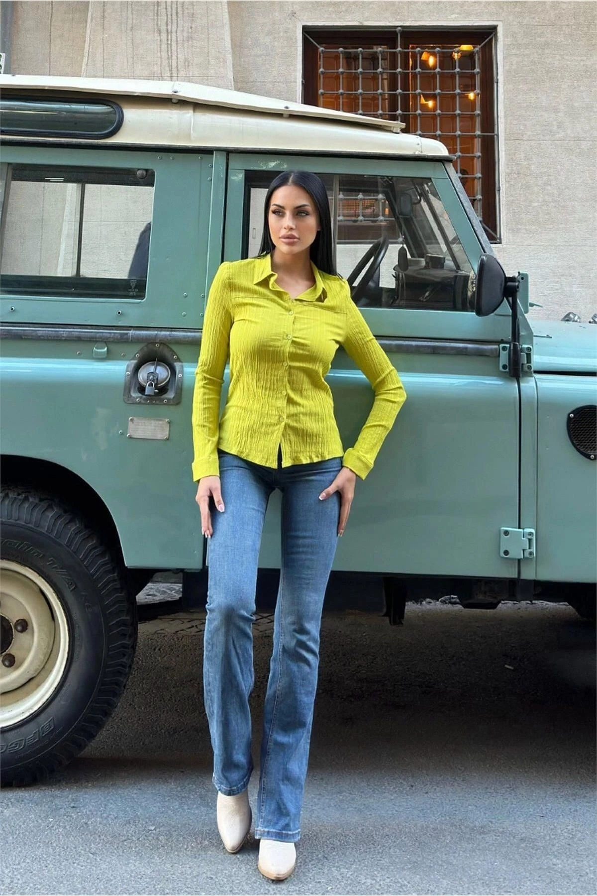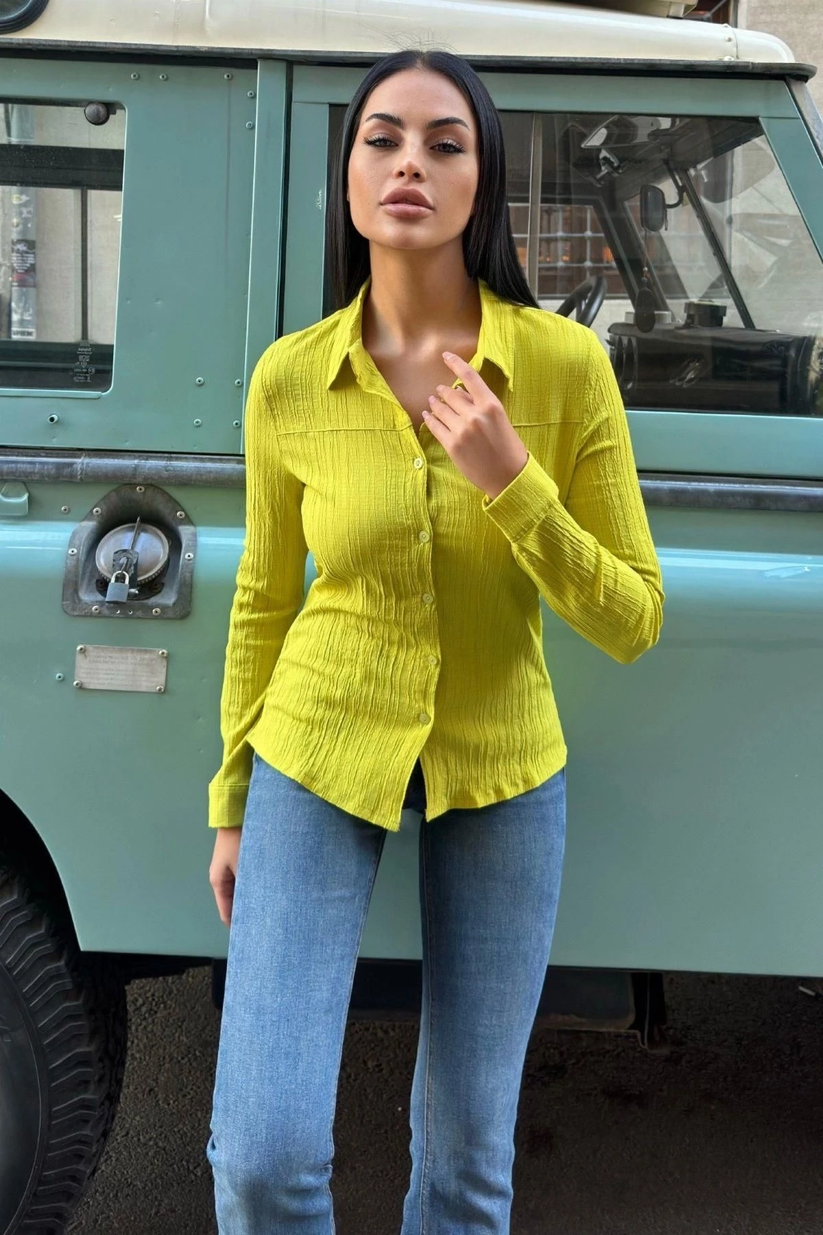 Yağ Yeşili Kadın Gömlek
