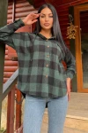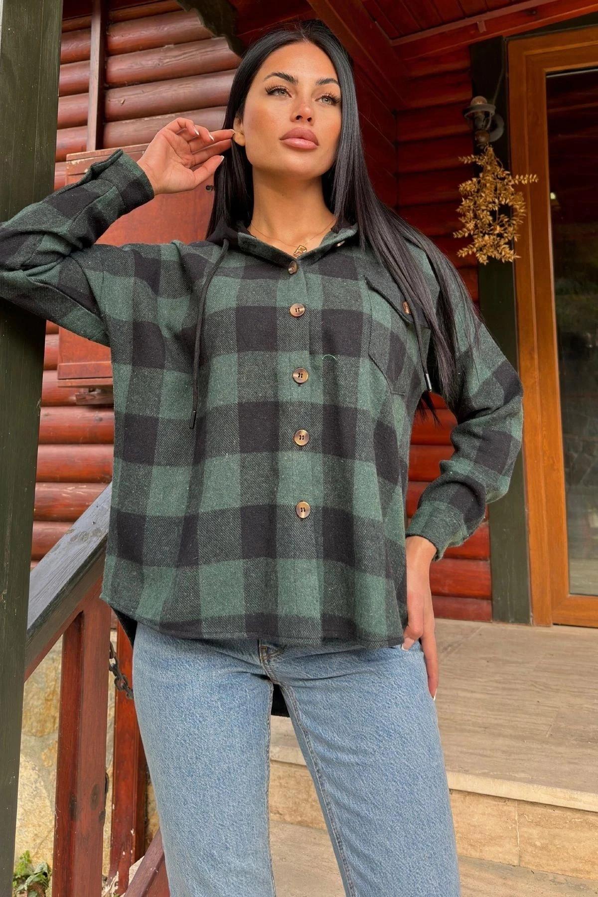 Yeşil Ekose Desenli, Yumuşak Dokulu, Kapüşonlu Oduncu Gömlek
