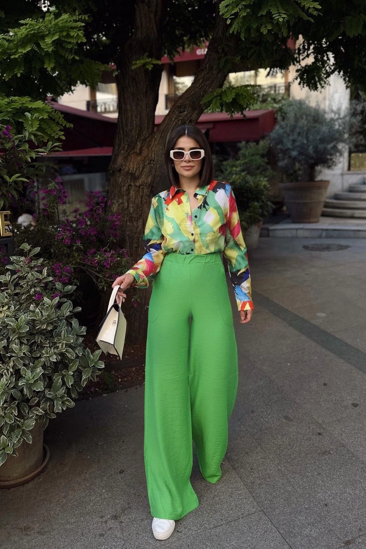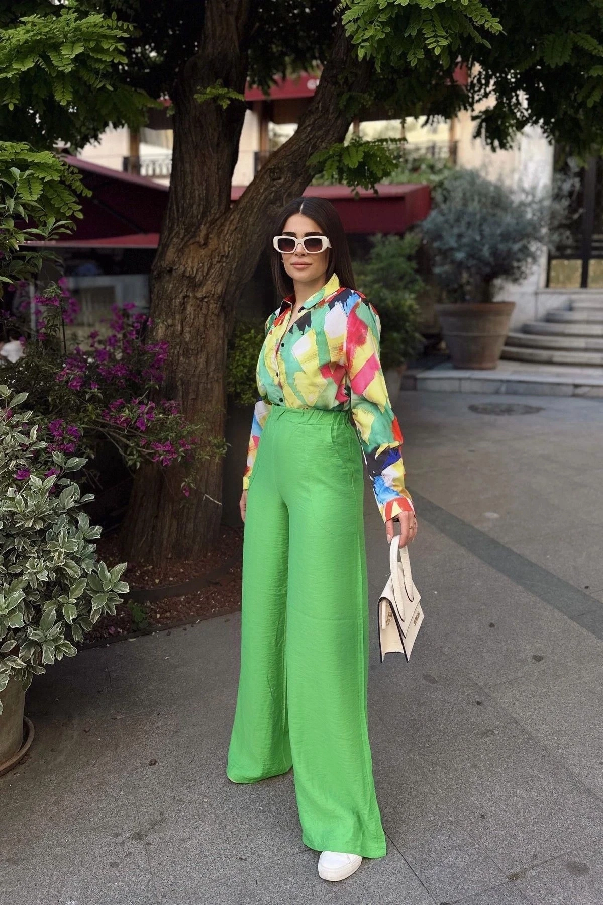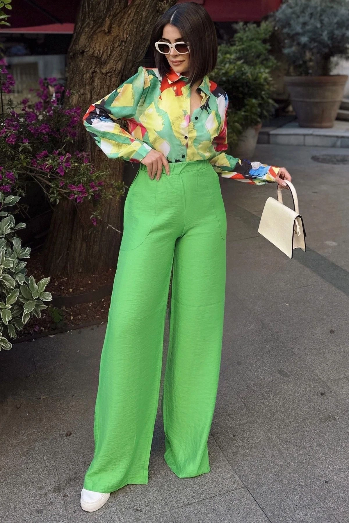 Yeşil İspanyol Bol Paça, Lastikli Bel, Keten/Airobin Kumaş, Salaş & Rahat, Cepli, İç Göstermez Pantolon, rahatlık ve şıklığı bir arada sunan bir seçenektir.; Bu pantolon, %60 Pamuk ve %40 Polyester karışımından üretilmiş keten/airobin kumaşıyla dikkat çeker.; Yeşil rengi, doğanın tazeliğini yansıtırken, İspanyol bol paça kesimi ve salaş & rahat tarzı pantolona ferah bir görünüm kazandırır.; Lastikli bel tasarımı, pantolonun rahatça giyilmesini sağlarken belde oturmayı destekler.; Keten/airobin kumaş, hem doğal hem de hafif bir his sunar.; Bu kumaşın özellikleri, pantolonun havadar ve konforlu bir giyim deneyimi sunmasına yardımcı olur.; İç göstermez özelliğiyle de ekstra rahatlık sağlar.; Cepli detaylar, pantolona işlevsellik katar ve küçük eşyalarınızı taşımanızı sağlar.; Salaş ve rahat kesimi, hareket özgürlüğü sağlar ve gün boyu rahatlık sunar.; Bu pantolon, rahat ve stil sahibi bir görünüm elde etmek isteyenler için mükemmel bir seçimdir.; Hem günlük giyimde hem de özel etkinliklerde kullanabilirsiniz.; Şık bir bluz veya basic bir t-shirt ile kombinleyerek farklı tarzlar oluşturabilirsiniz.; %60 Pamuk ve %40 Polyester karışımı, üstün kaliteli bir kumaş sunar.; Pamuk, yumuşaklık, nefes alabilirlik ve cilt dostu özellikler sağlarken, polyester kumaş dayanıklılık, esneklik ve kolay bakım sağlar.; Yeşil İspanyol Bol Paça, Lastikli Bel, Keten/Airobin Kumaş, Salaş & Rahat, Cepli, İç Göstermez Pantolon, gardırobunuzun özgün ve rahat parçalarından biri olacak.; Şıklığı ve rahatlığı bir arada sunan bu pantolon, her an ve her durumda tarzınızı tamamlayacak ve sizi özel hissettirecektir.