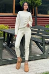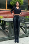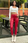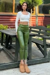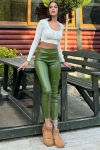 Yeşil Yüksek Bel, Arkası Lastikli, Esnek Deri Tayt